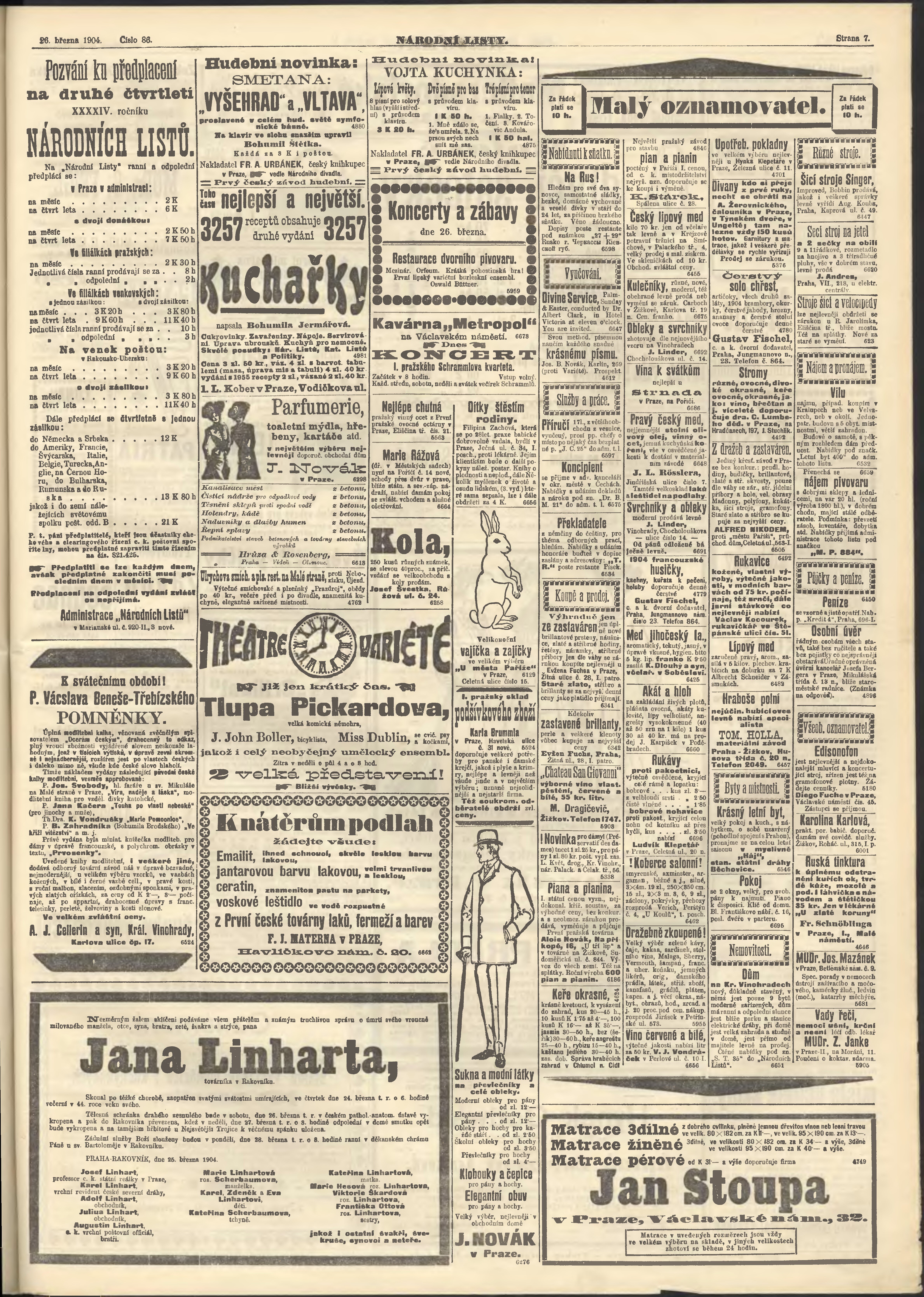 * Datum vydání výtisku: 26.3.1904 Číslo výtisku: 86 Poznámky k výtisku: ranní vydání;