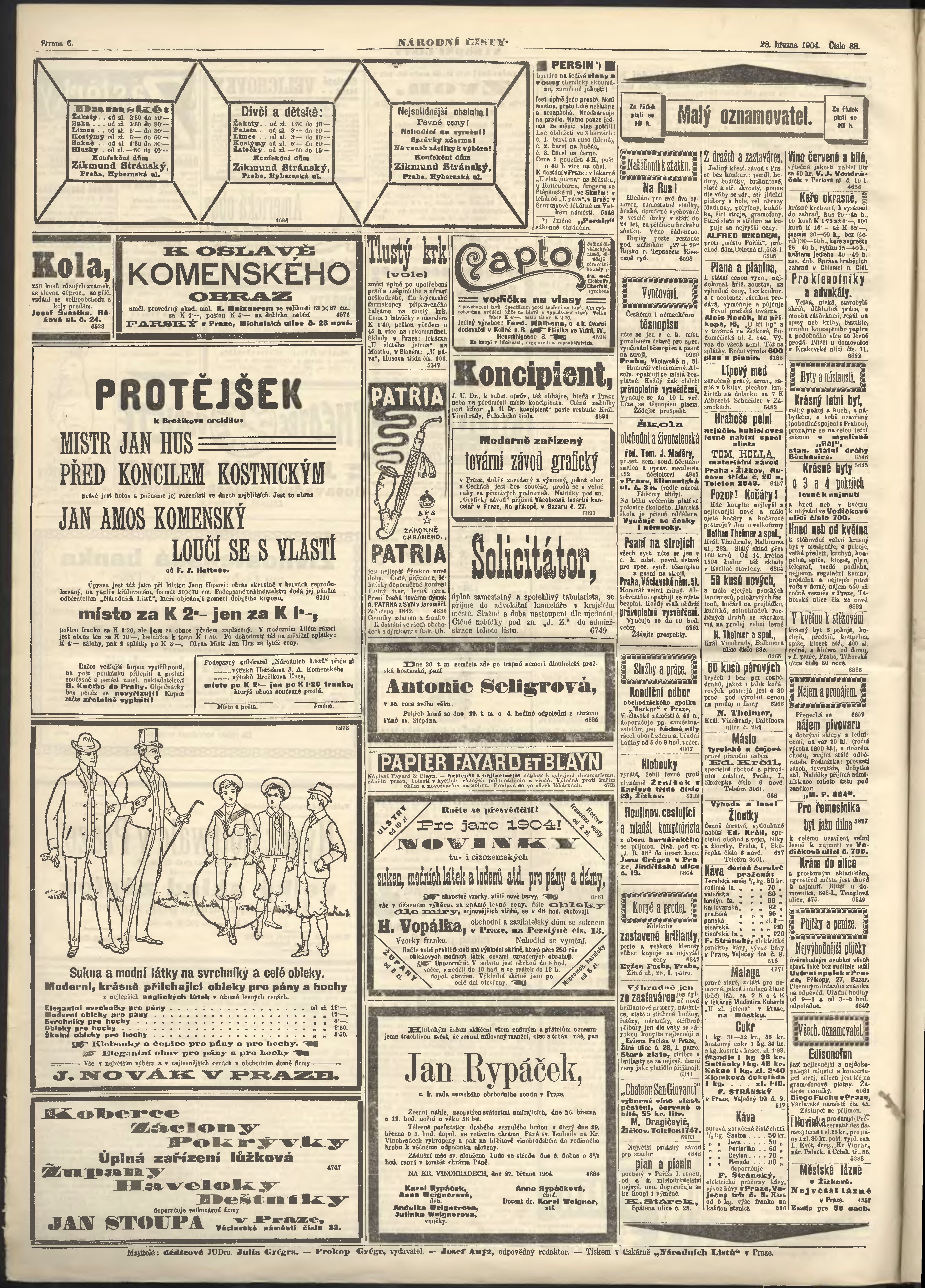* Datum vydání výtisku: 28.3.1904 Číslo výtisku: 88 Poznámky k výtisku: ranní vydání; s. [1] není k dispozici;