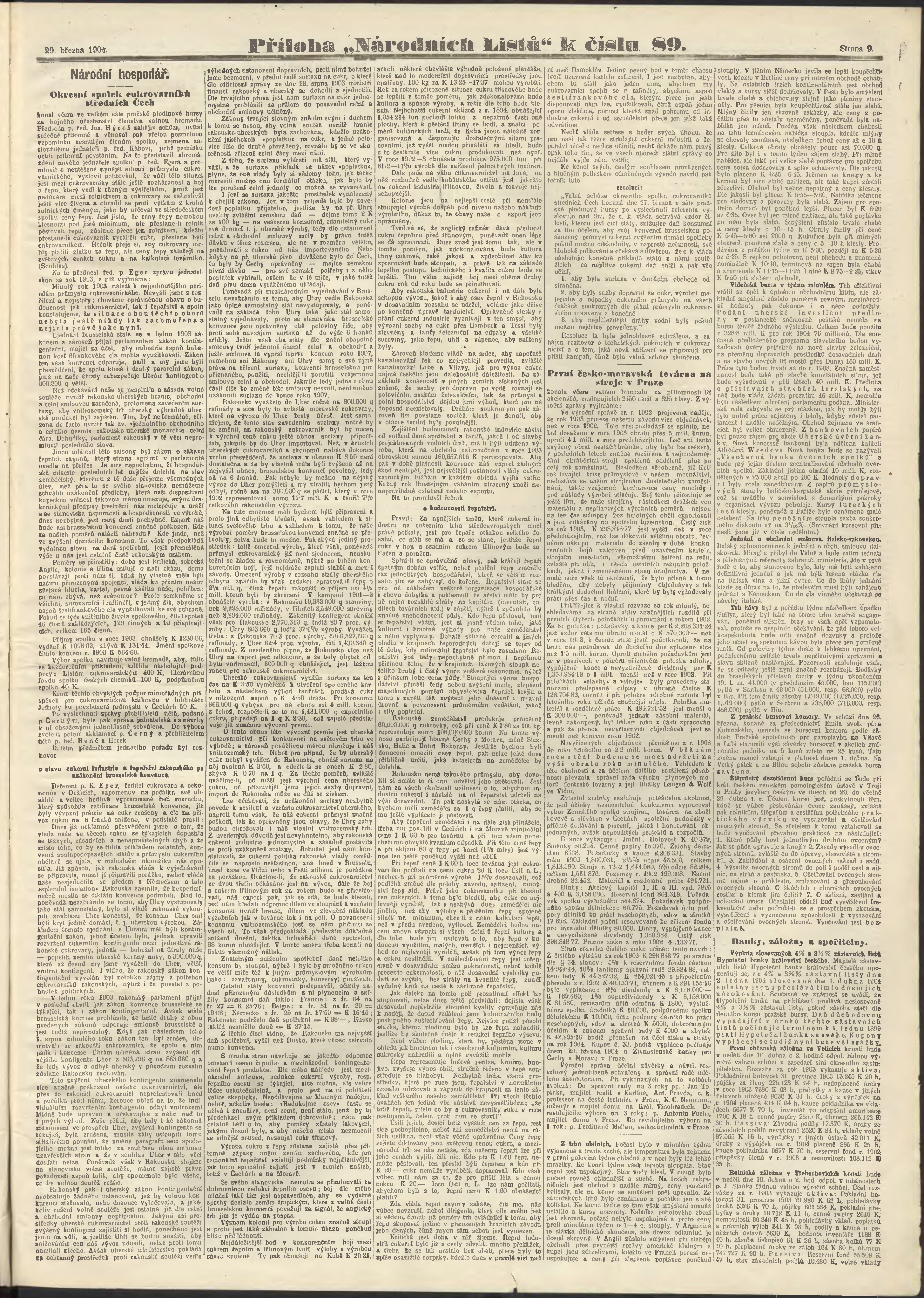 * Datum vydání výtisku: 29.3.1904 Číslo výtisku: 89 Poznámky k výtisku: ranní vydání;