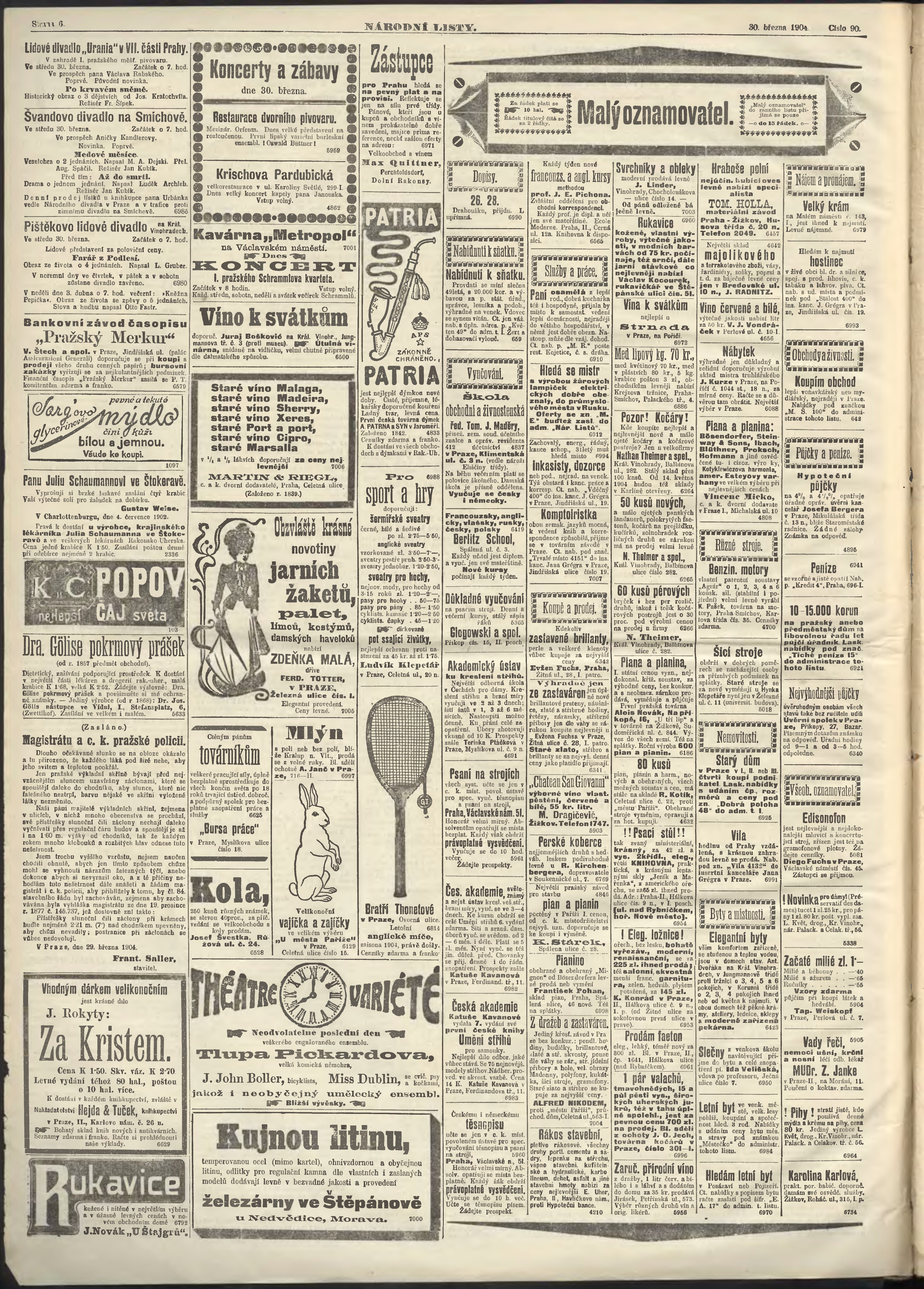 * Datum vydání výtisku: 30.3.1904 Číslo výtisku: 90 Poznámky k výtisku: ranní vydání;
