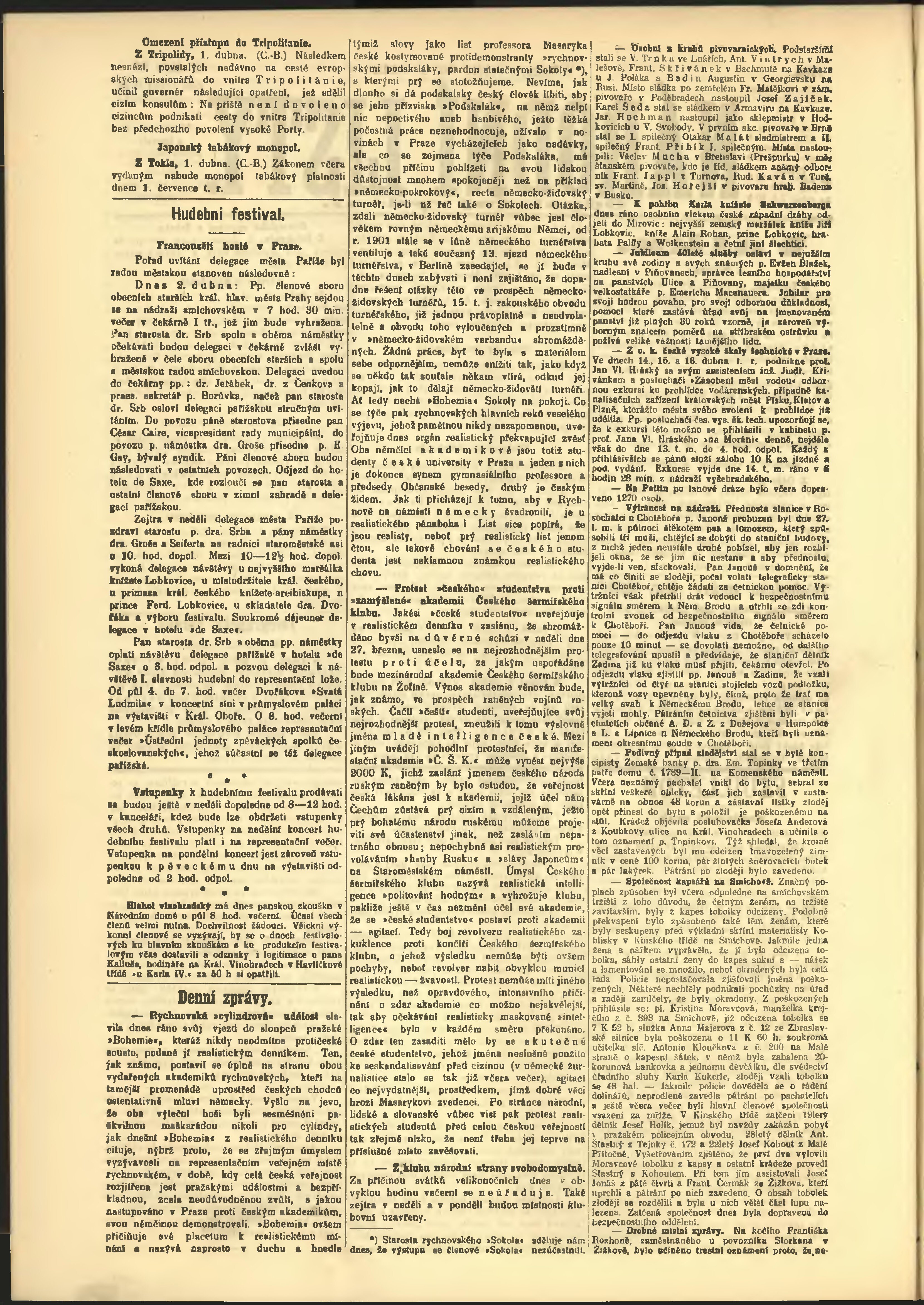 * Datum vydání výtisku: 2.4.1904 Číslo výtisku: 93 Poznámky k výtisku: odpolední vydání;