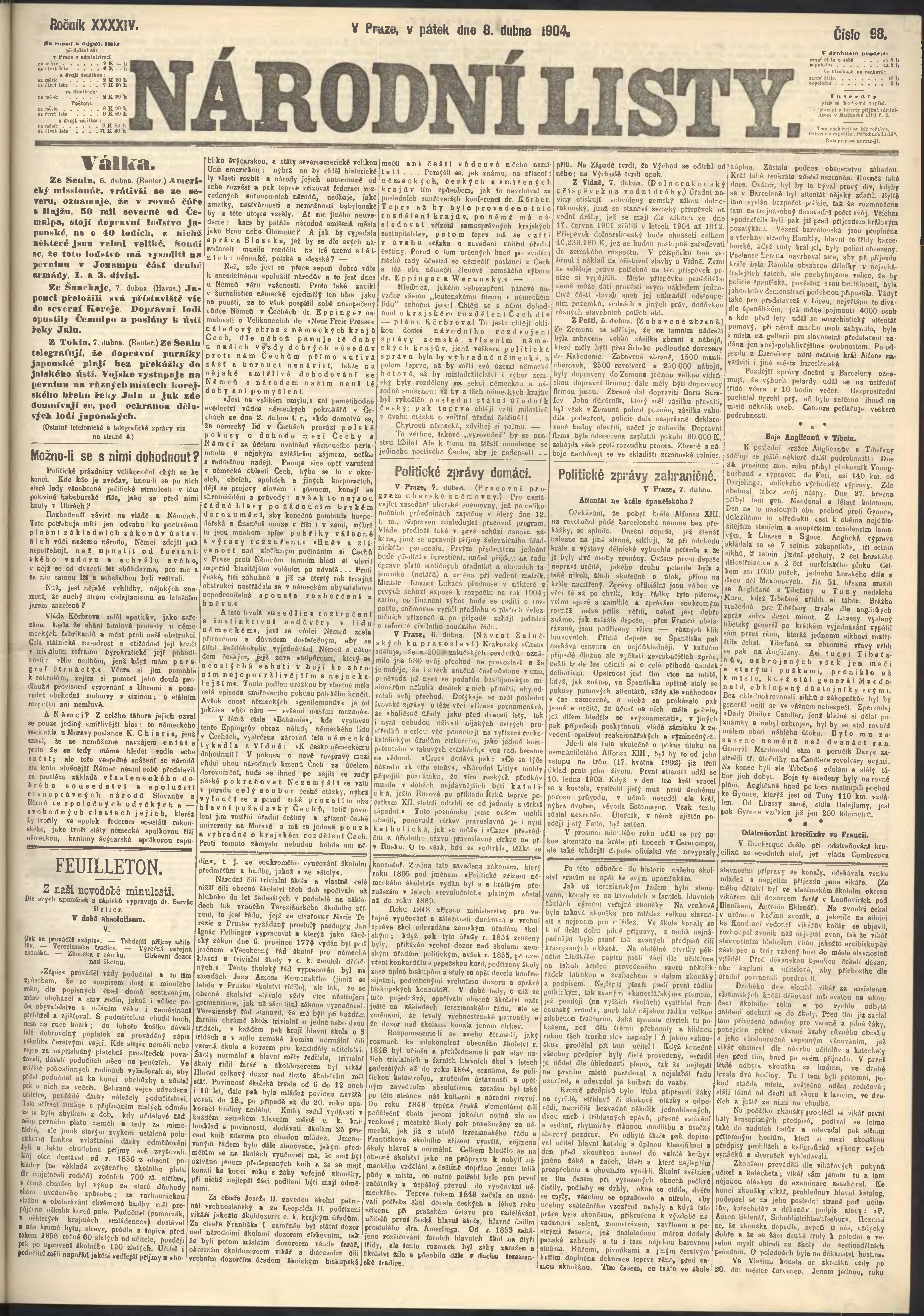 * Datum vydání výtisku: 8.4.1904 Číslo výtisku: 98 Poznámky k výtisku: ranní vydání;