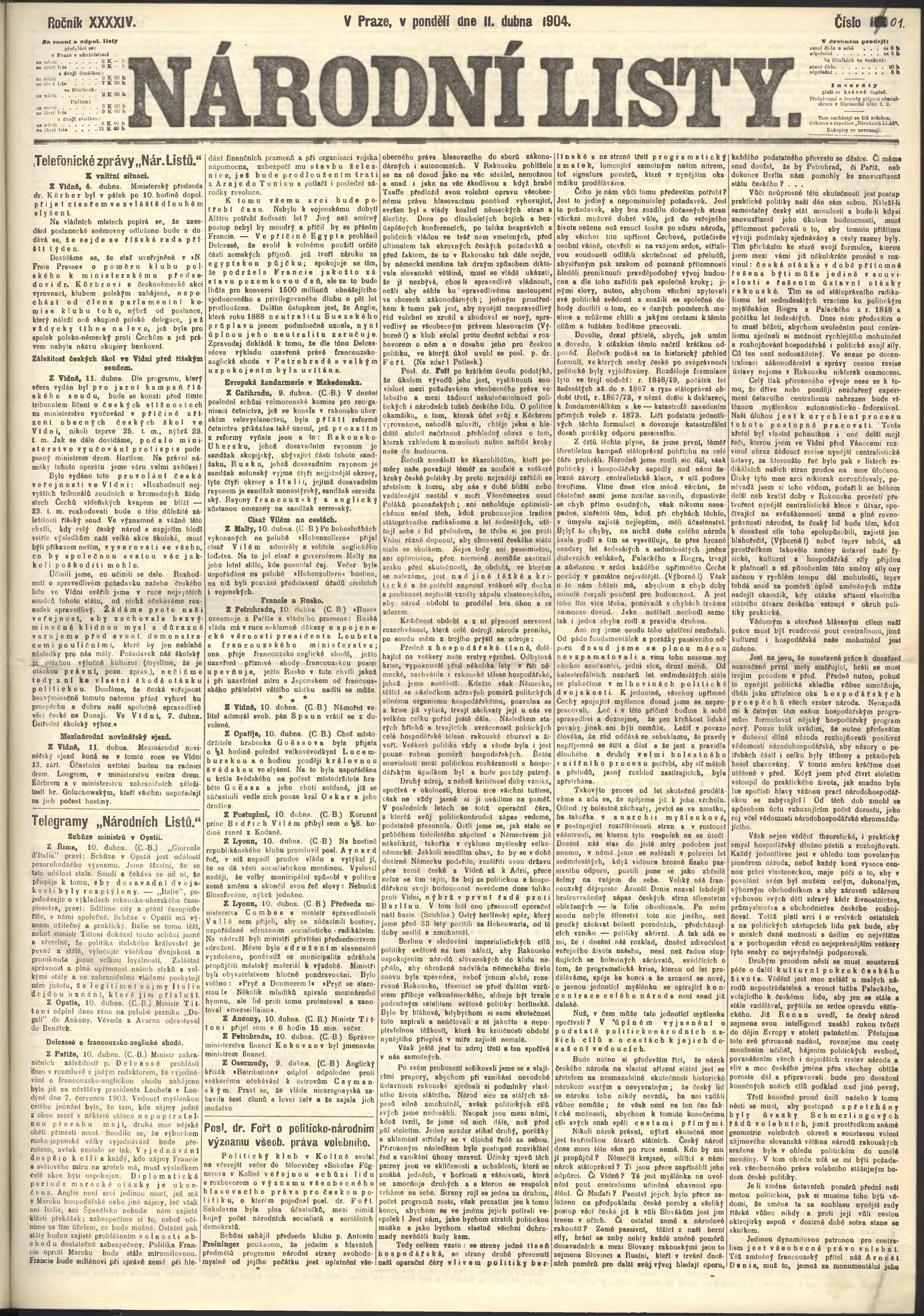 * Datum vydání výtisku: 11.4.1904 Číslo výtisku: 101 Poznámky k výtisku: ranní vydání;