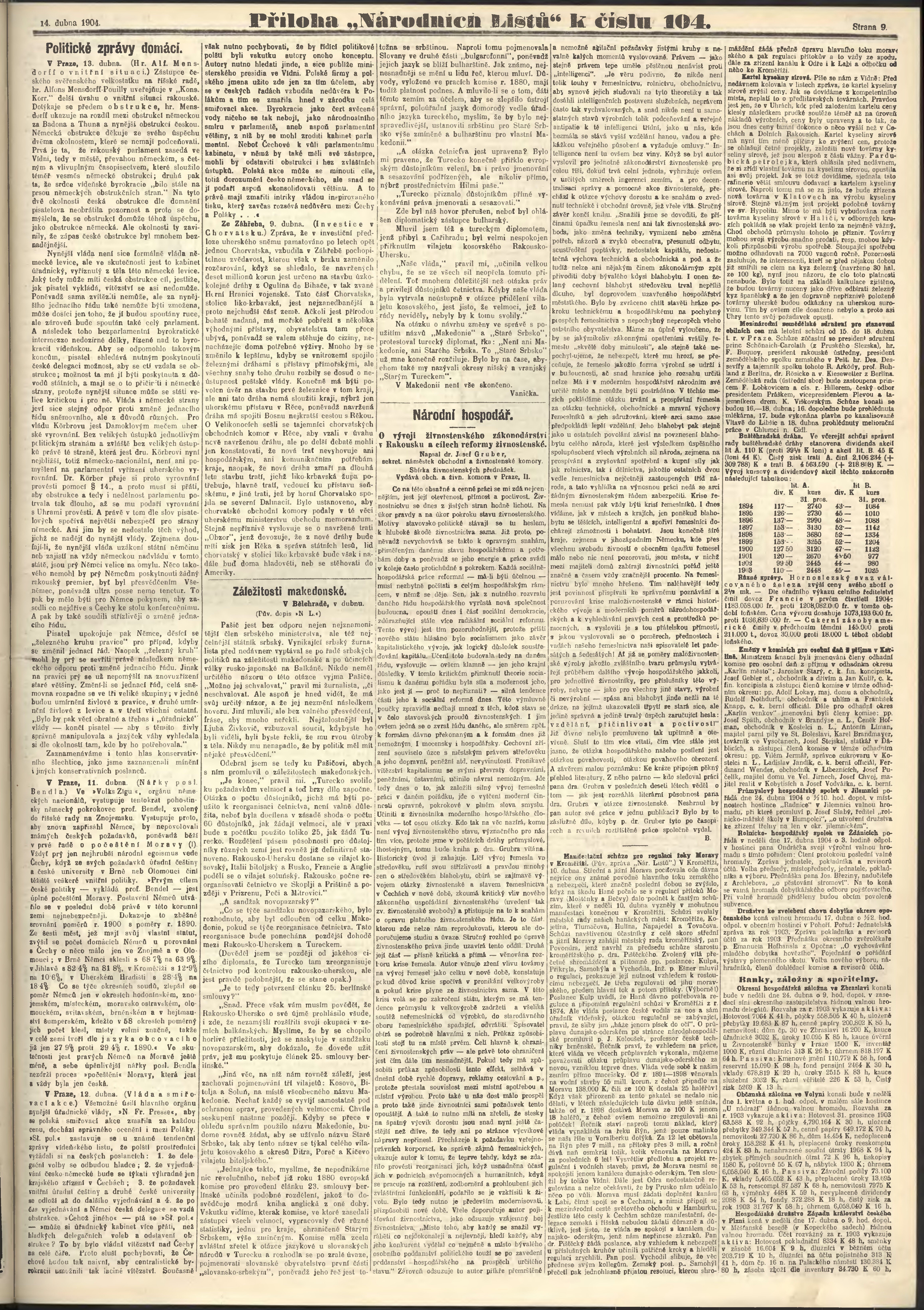 * Datum vydání výtisku: 14.4.1904 Číslo výtisku: 104 Poznámky k výtisku: ranní vydání;