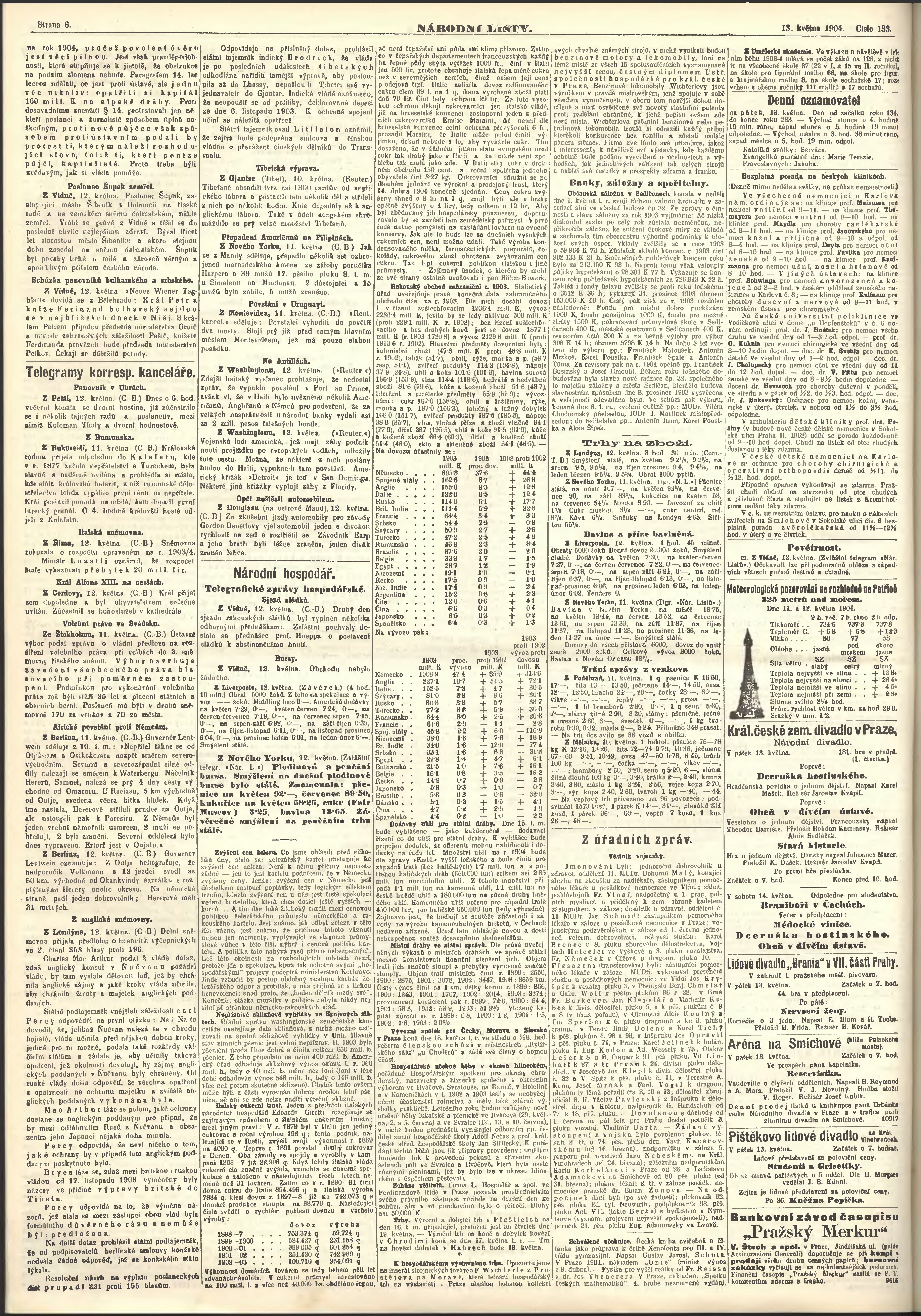 * Datum vydání výtisku: 13.5.1904 Číslo výtisku: 133 Poznámky k výtisku: ranní vydání;