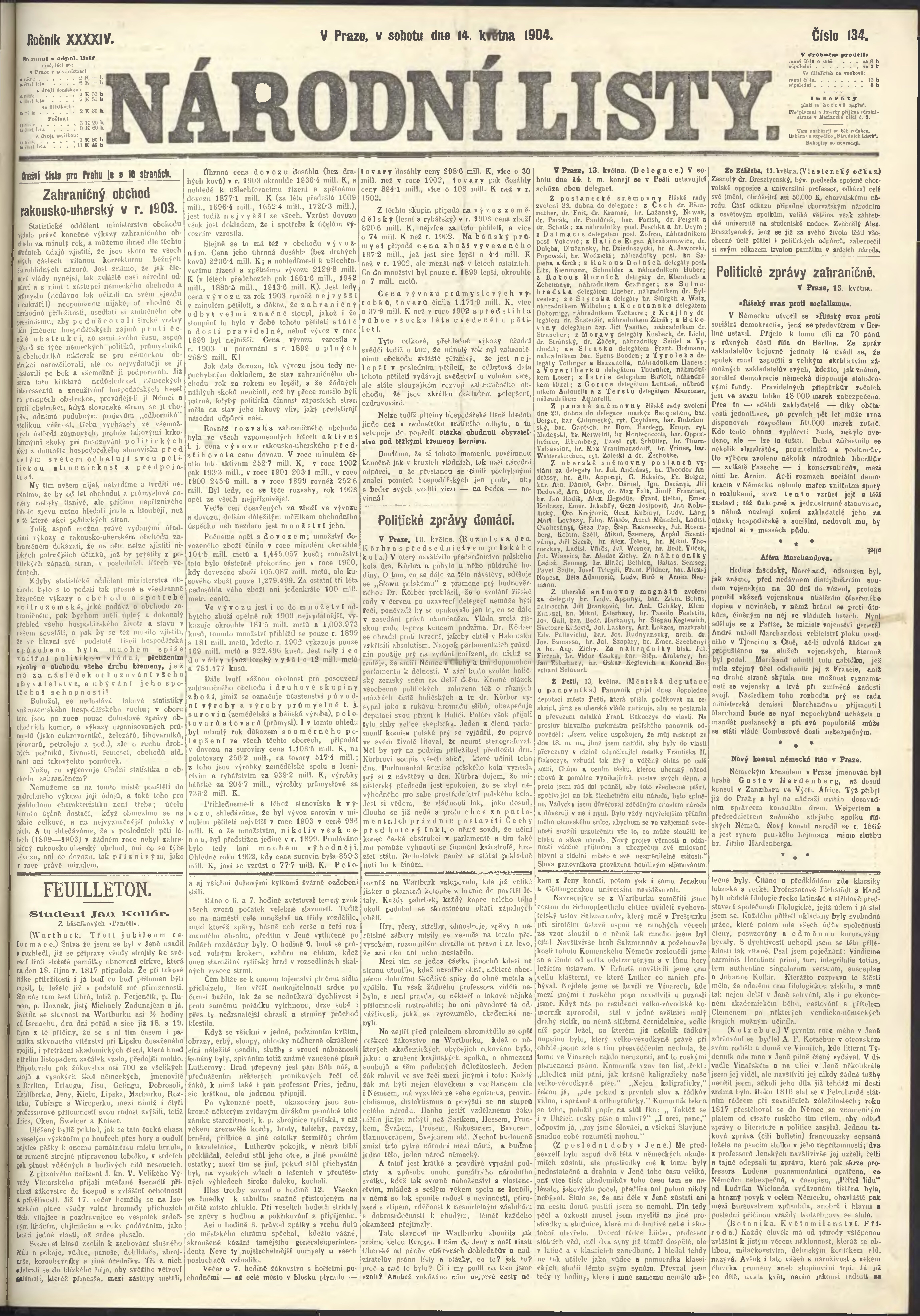 * Datum vydání výtisku: 14.5.1904 Číslo výtisku: 134 Poznámky k výtisku: ranní vydání;