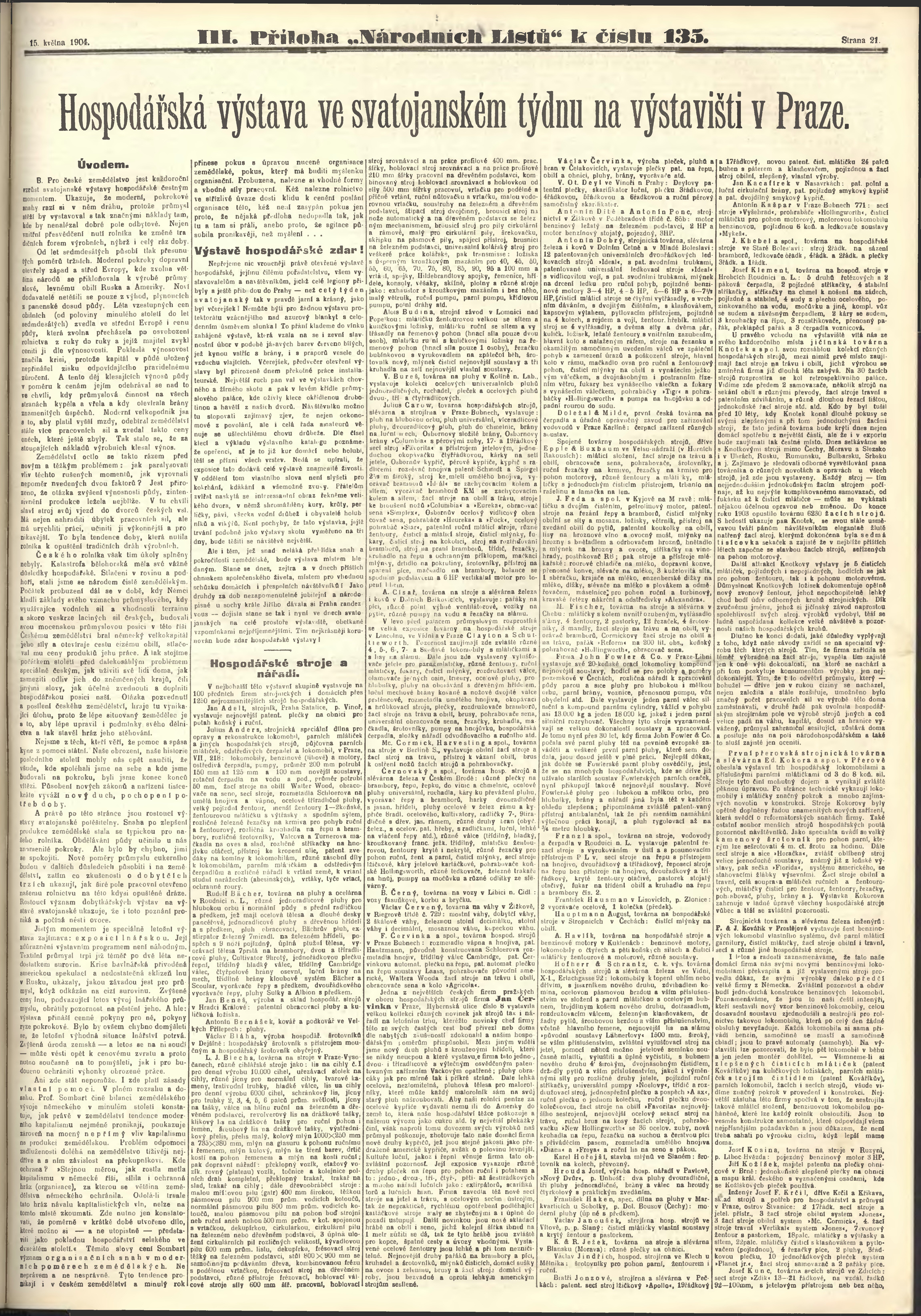 * Datum vydání výtisku: 15.5.1904 Číslo výtisku: 135 Poznámky k výtisku: ranní vydání;