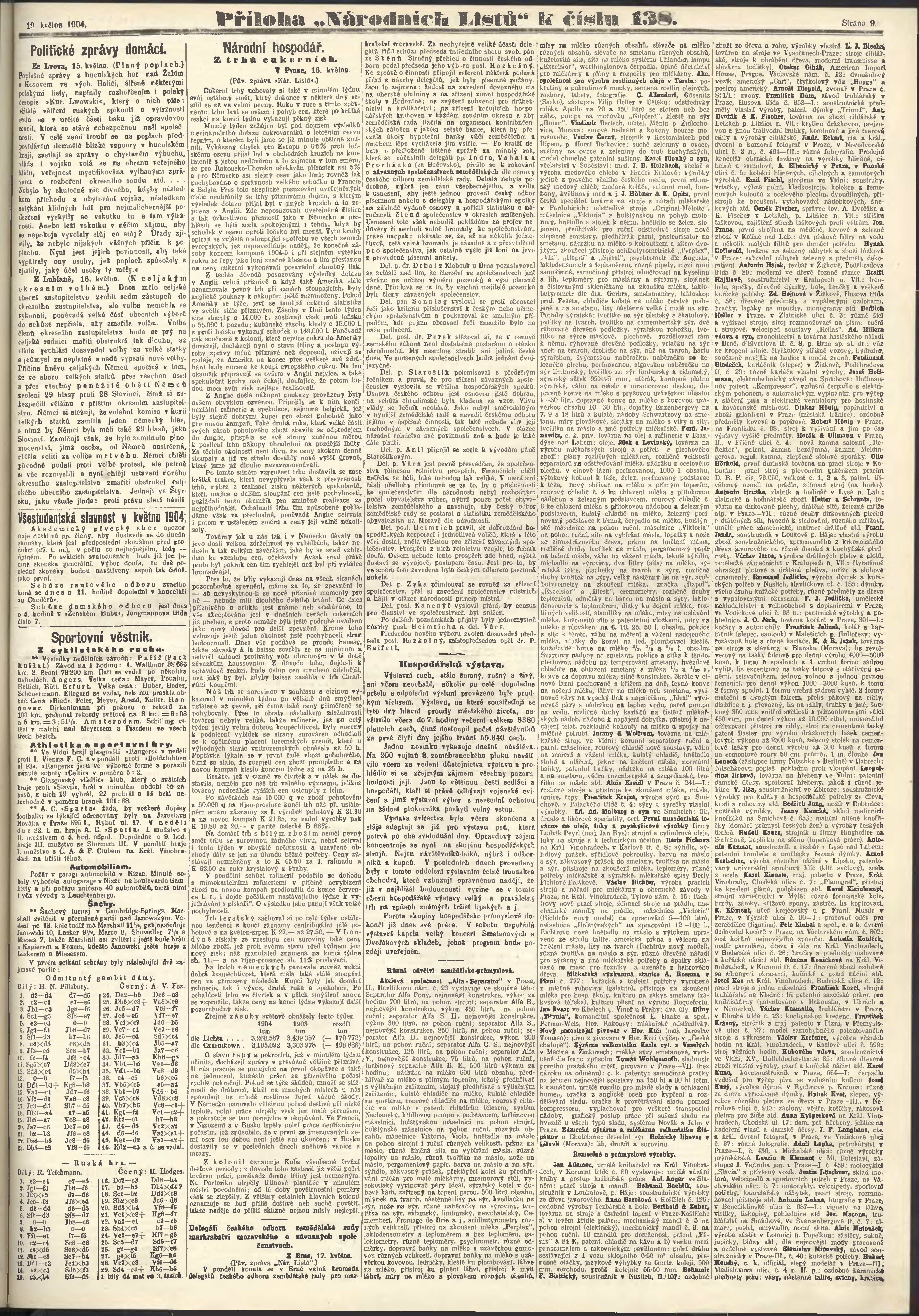 * Datum vydání výtisku: 19.5.1904 Číslo výtisku: 138 Poznámky k výtisku: ranní vydání;