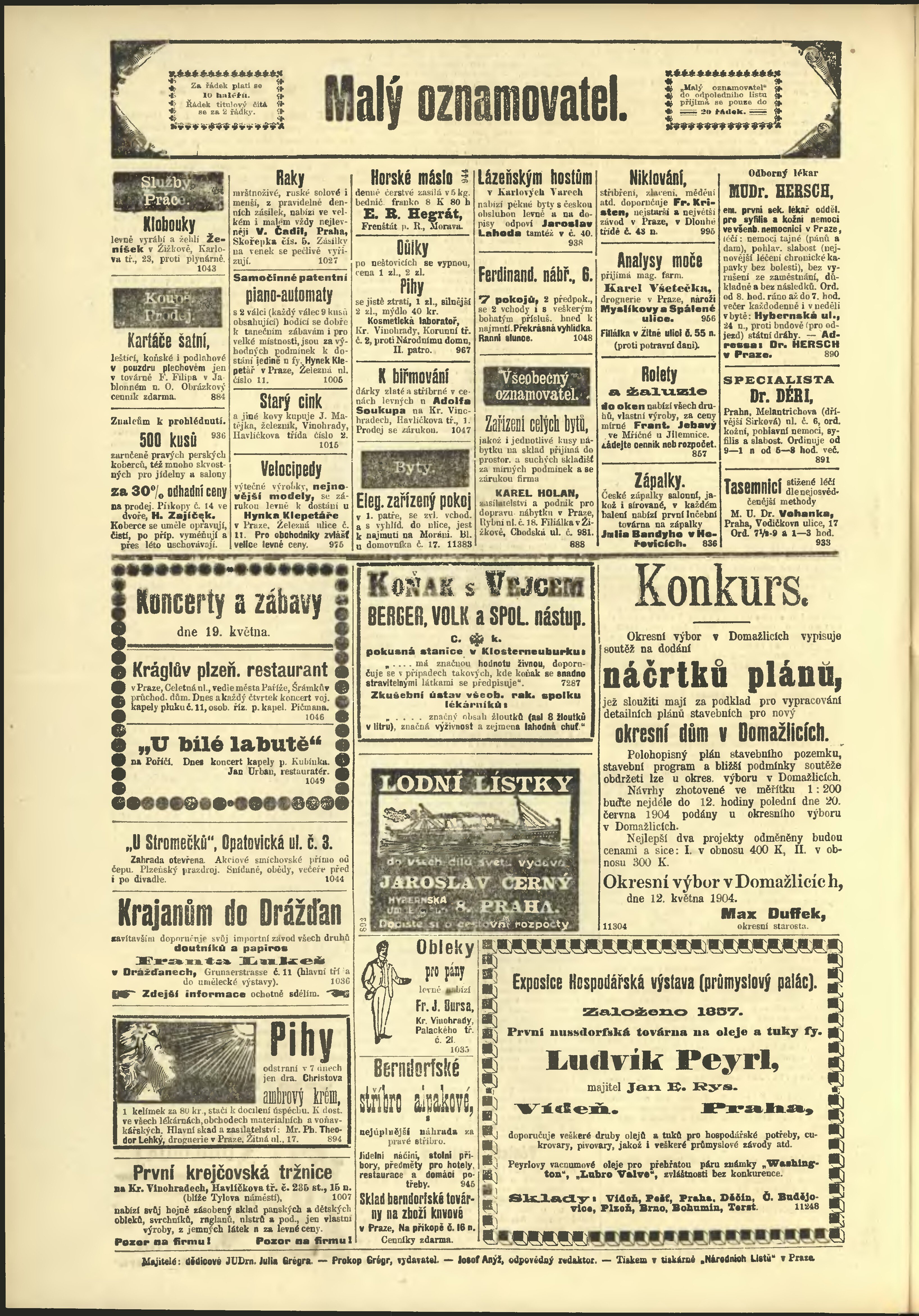 * Datum vydání výtisku: 19.5.1904 Číslo výtisku: 138 Poznámky k výtisku: odpolední vydání;