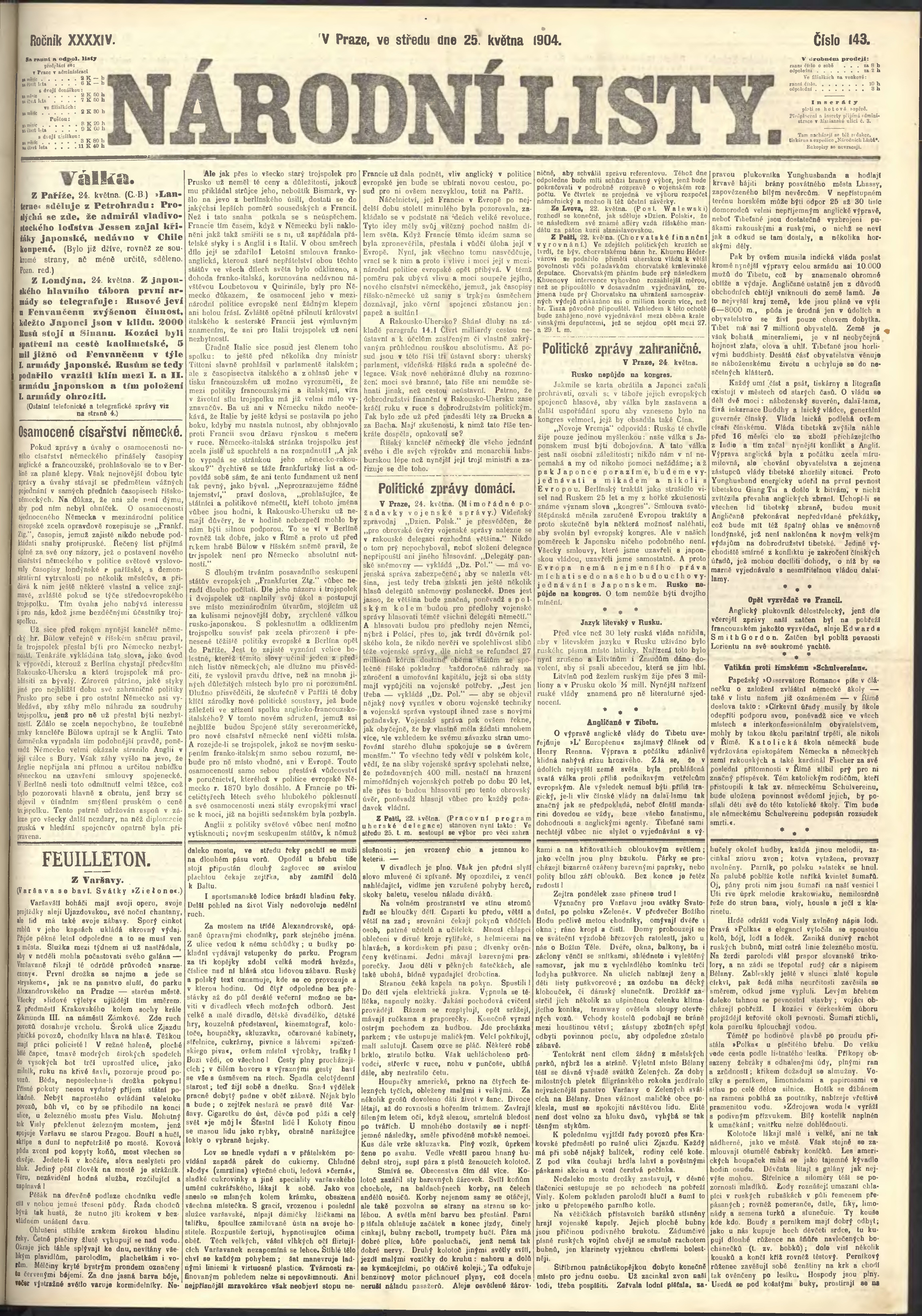 * Datum vydání výtisku: 25.5.1904 Číslo výtisku: 143 Poznámky k výtisku: ranní vydání;