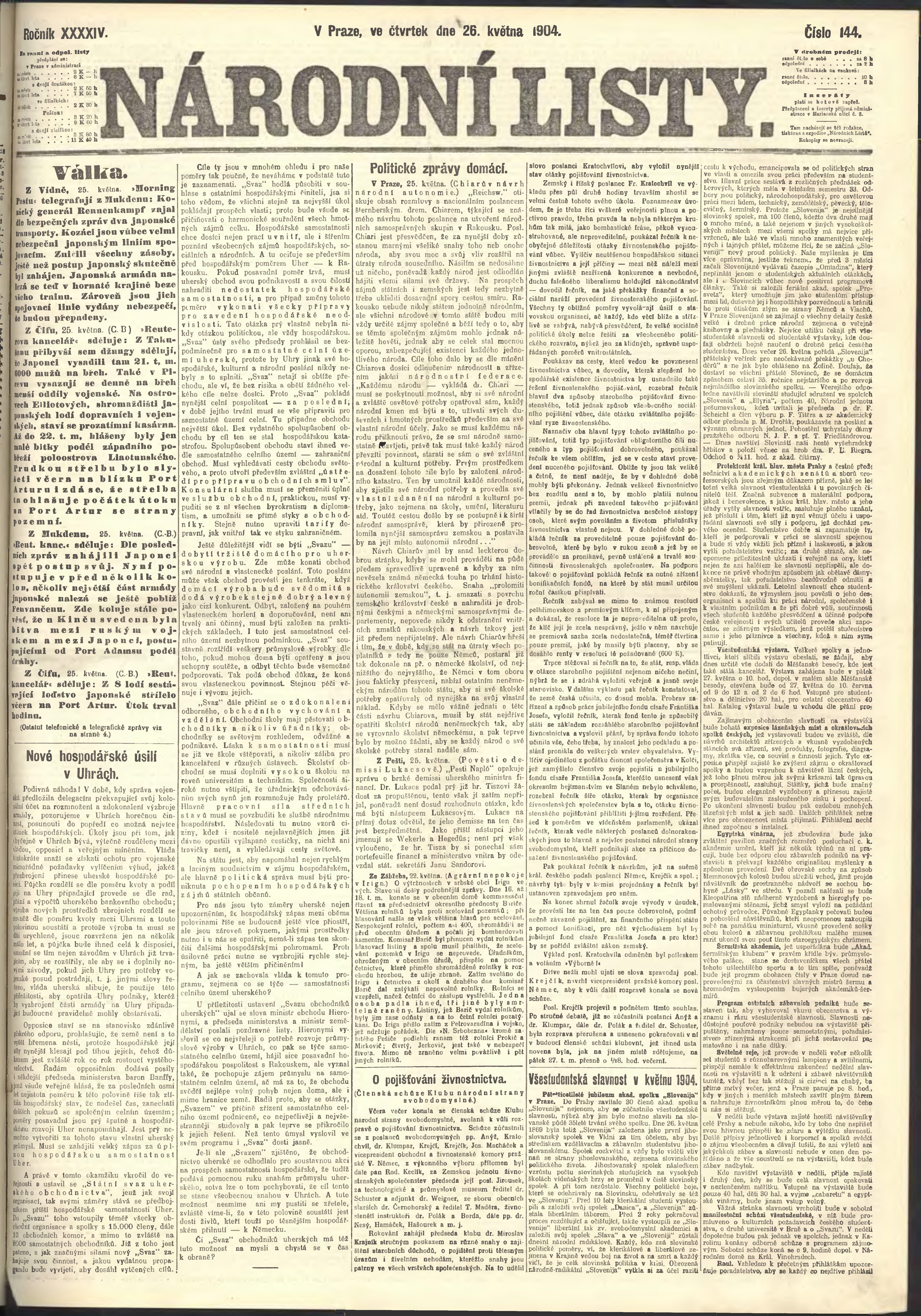 * Datum vydání výtisku: 26.5.1904 Číslo výtisku: 144 Poznámky k výtisku: ranní vydání;
