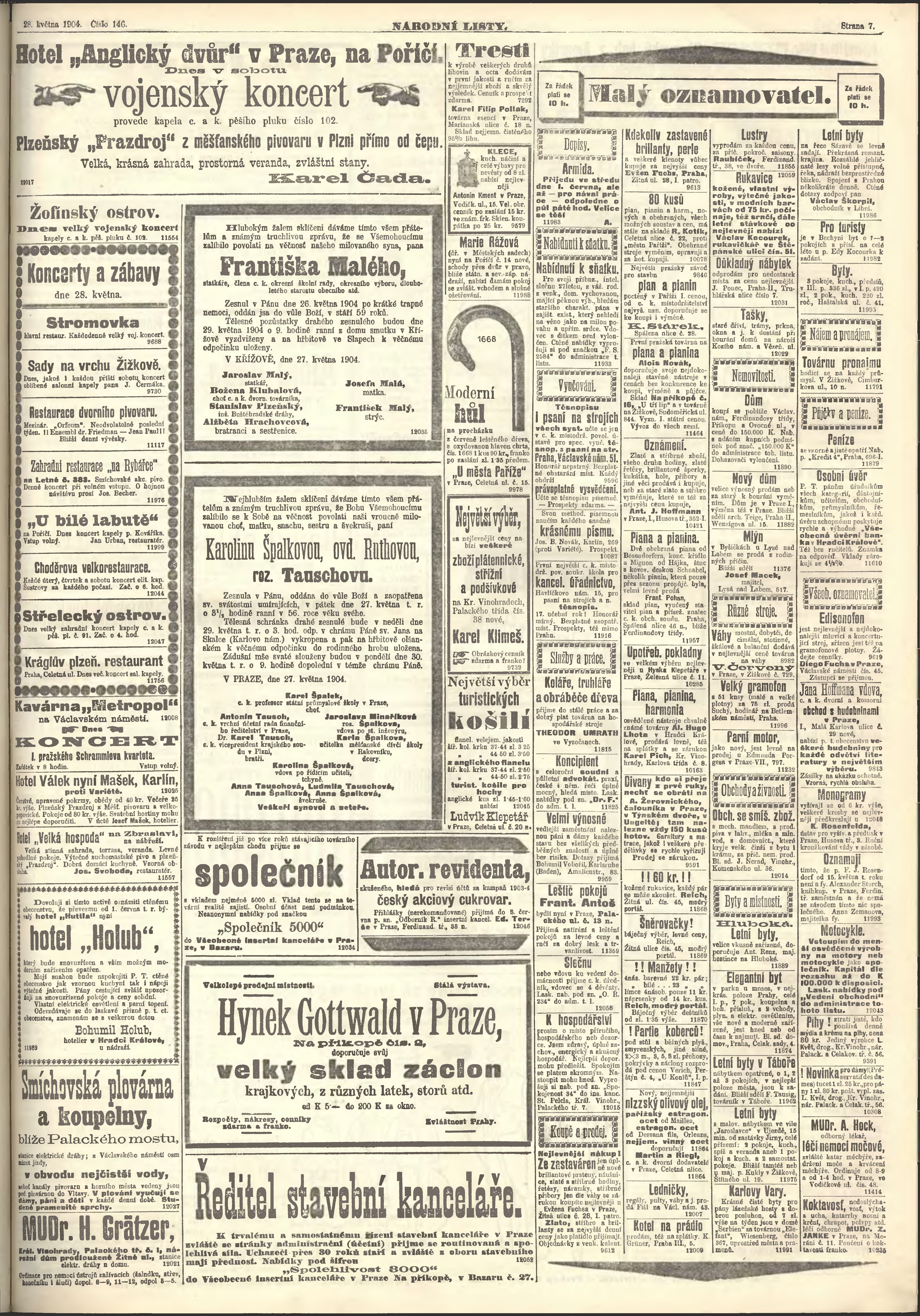 * Datum vydání výtisku: 28.5.1904 Číslo výtisku: 146 Poznámky k výtisku: ranní vydání;