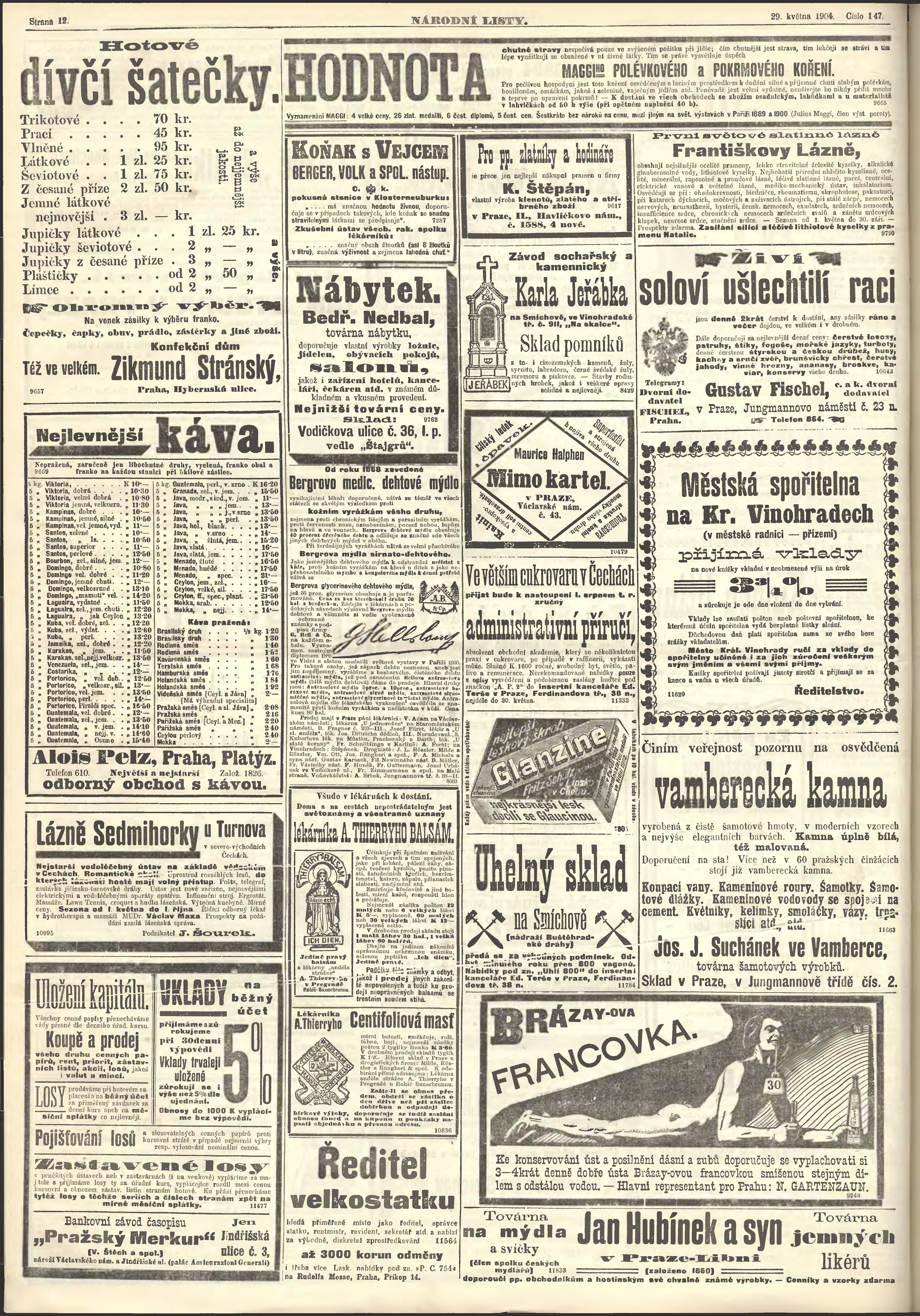 * Datum vydání výtisku: 29.5.1904 Číslo výtisku: 147 Poznámky k výtisku: ranní vydání;