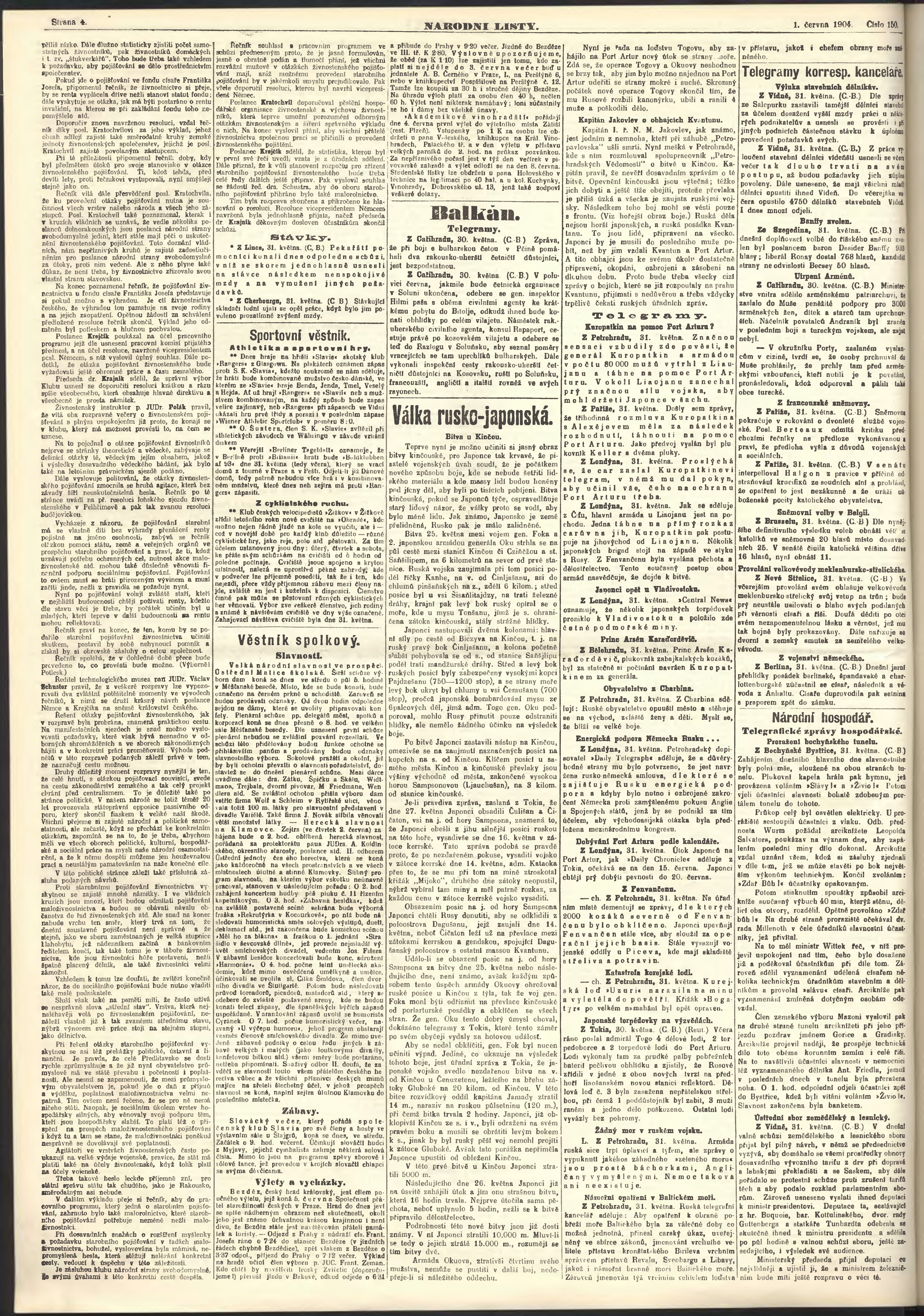* Datum vydání výtisku: 1.6.1904 Číslo výtisku: 150 Poznámky k výtisku: ranní vydání;
