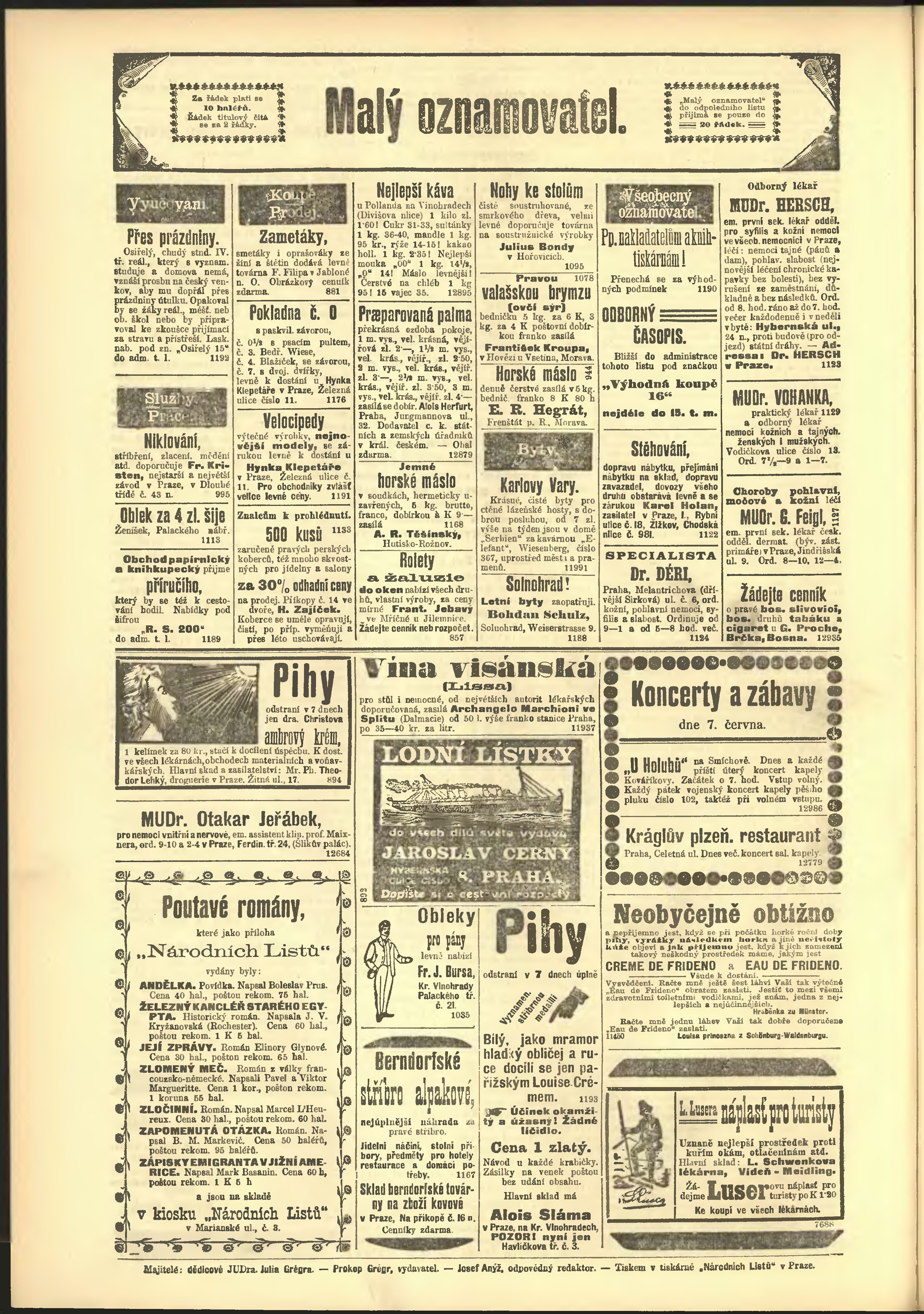 * Datum vydání výtisku: 7.6.1904 Číslo výtisku: 156 Poznámky k výtisku: odpolední vydání;