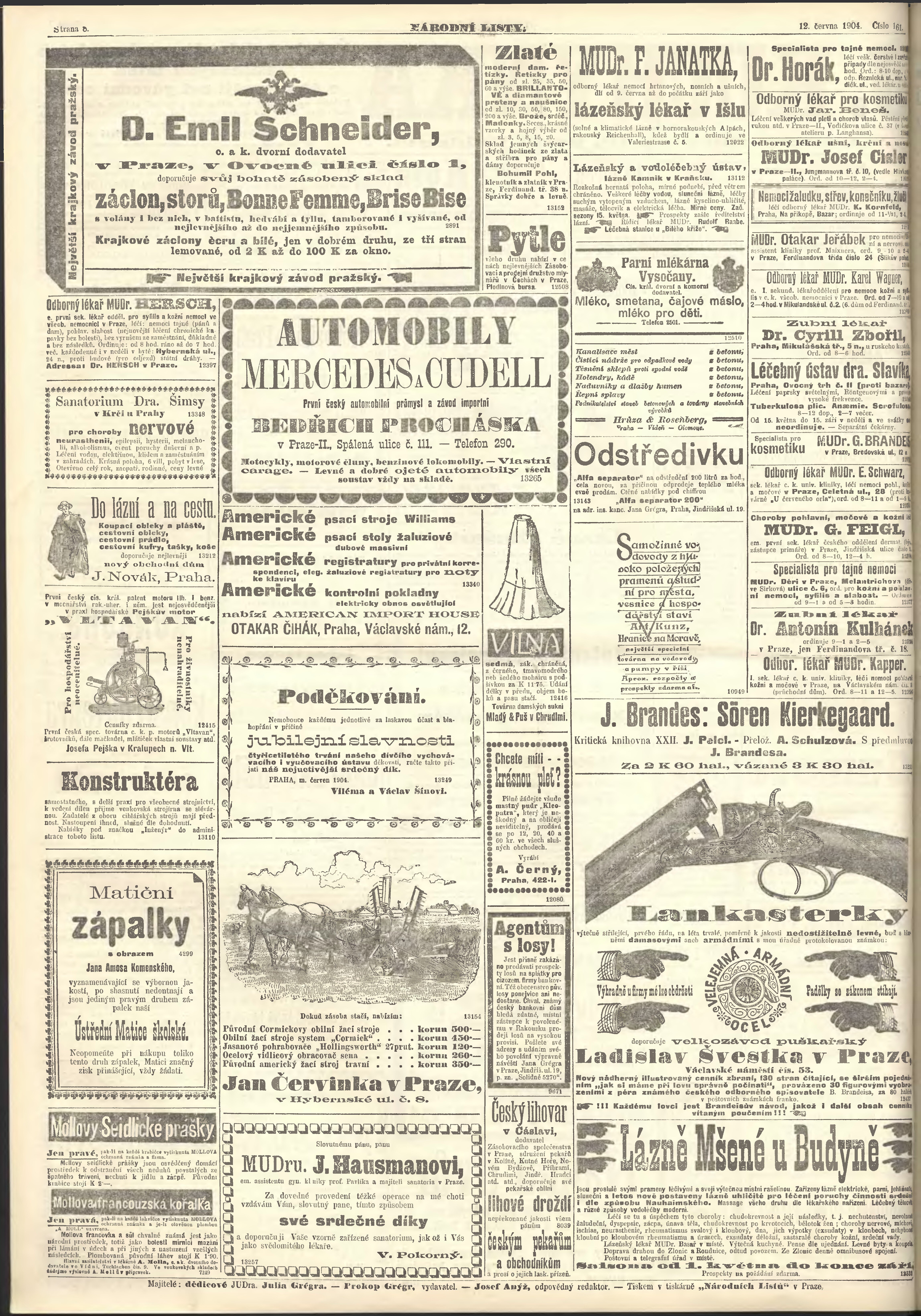 * Datum vydání výtisku: 12.6.1904 Číslo výtisku: 161 Poznámky k výtisku: ranní vydání;