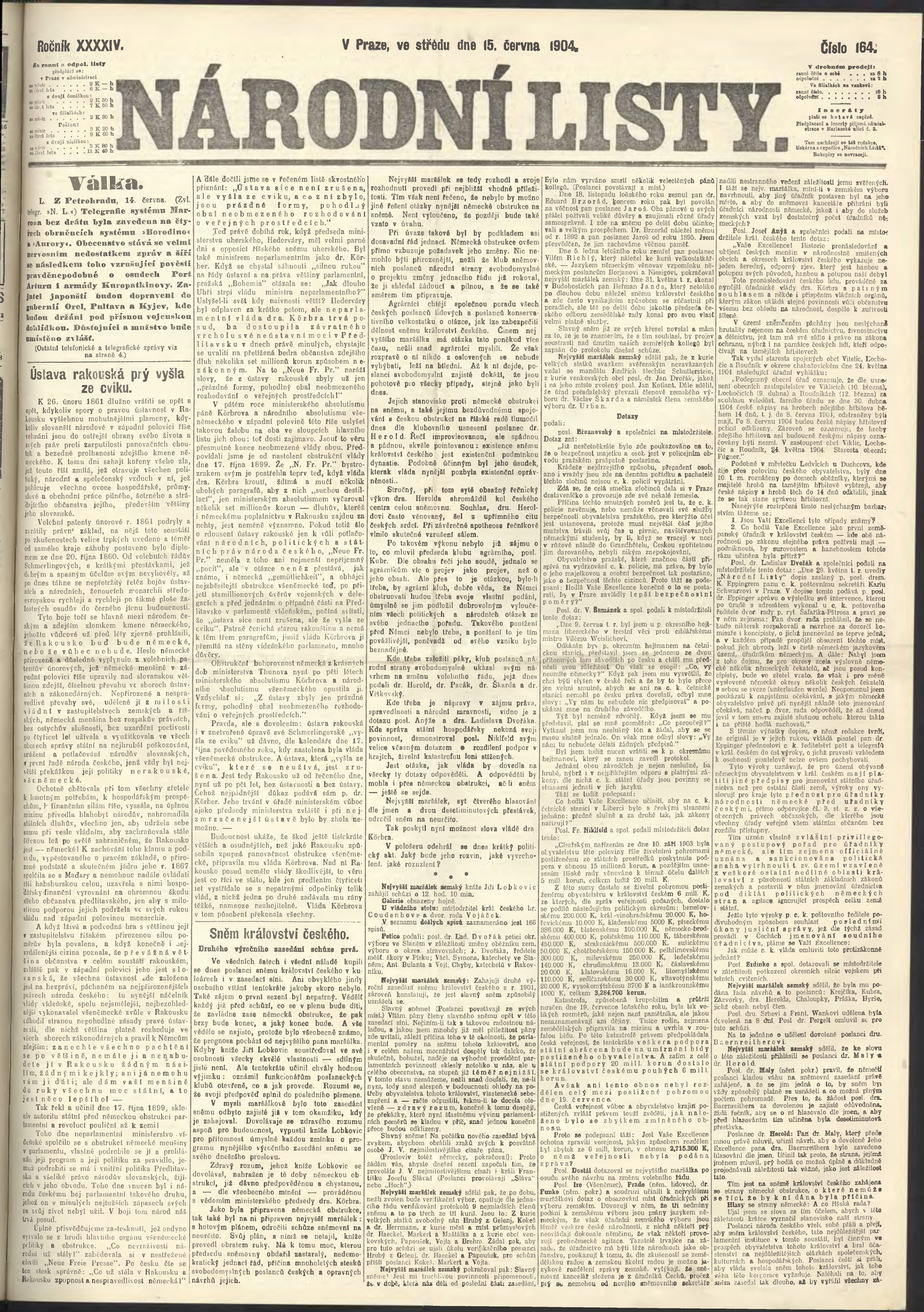 * Datum vydání výtisku: 15.6.1904 Číslo výtisku: 164 Poznámky k výtisku: ranní vydání;