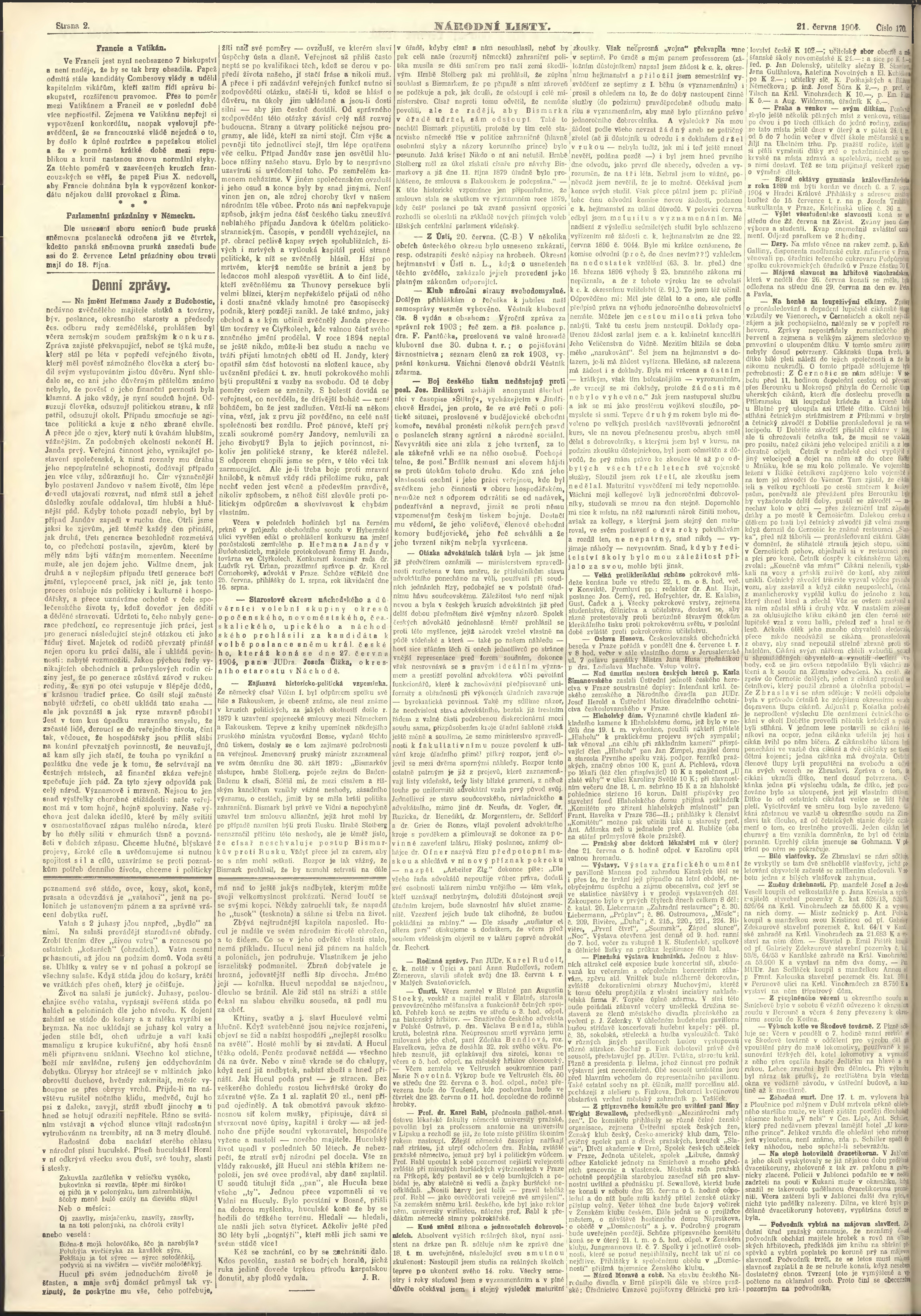 * Datum vydání výtisku: 21.6.1904 Číslo výtisku: 170 Poznámky k výtisku: ranní vydání;