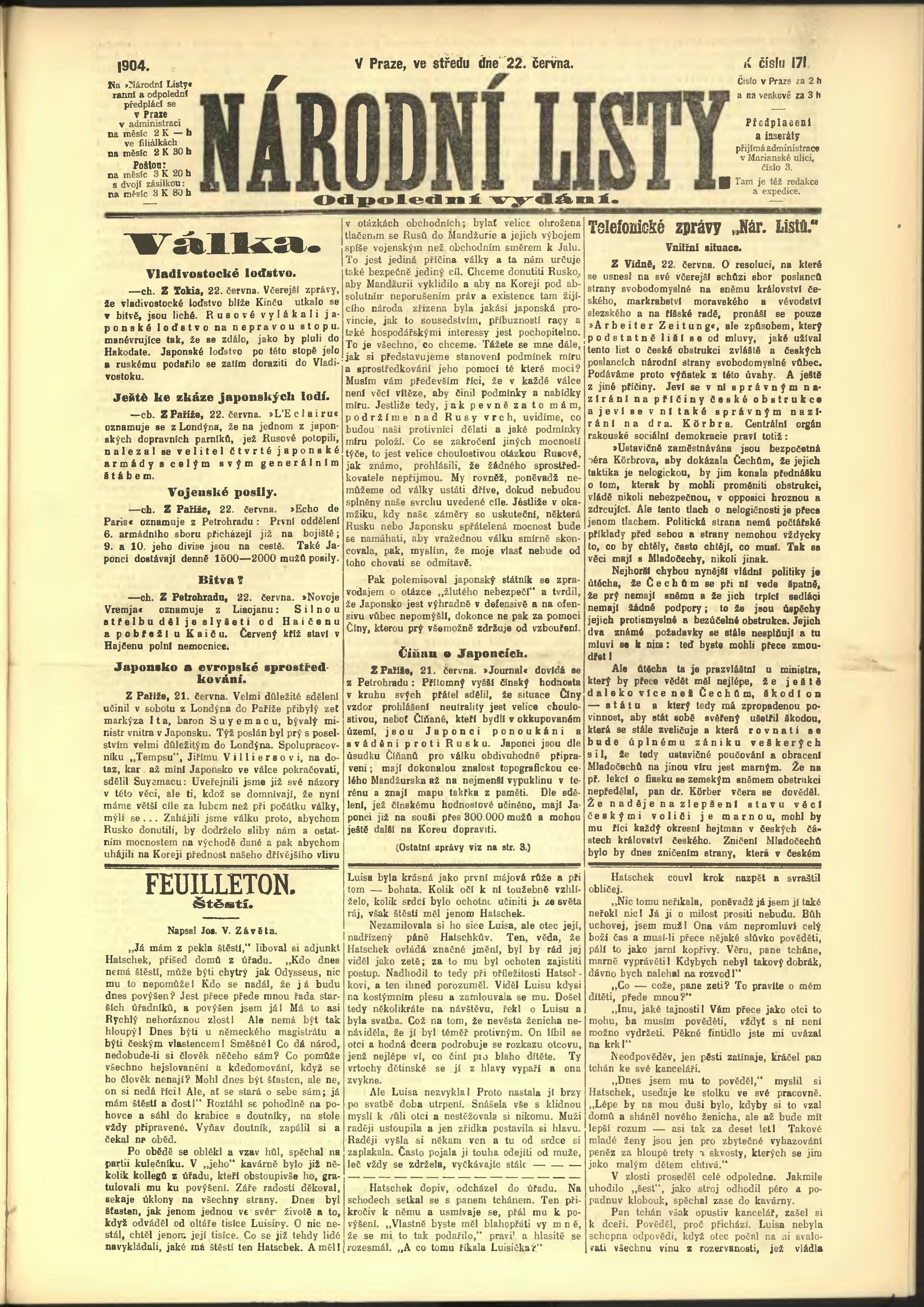 * Datum vydání výtisku: 22.6.1904 Číslo výtisku: 171 Poznámky k výtisku: odpolední vydání;