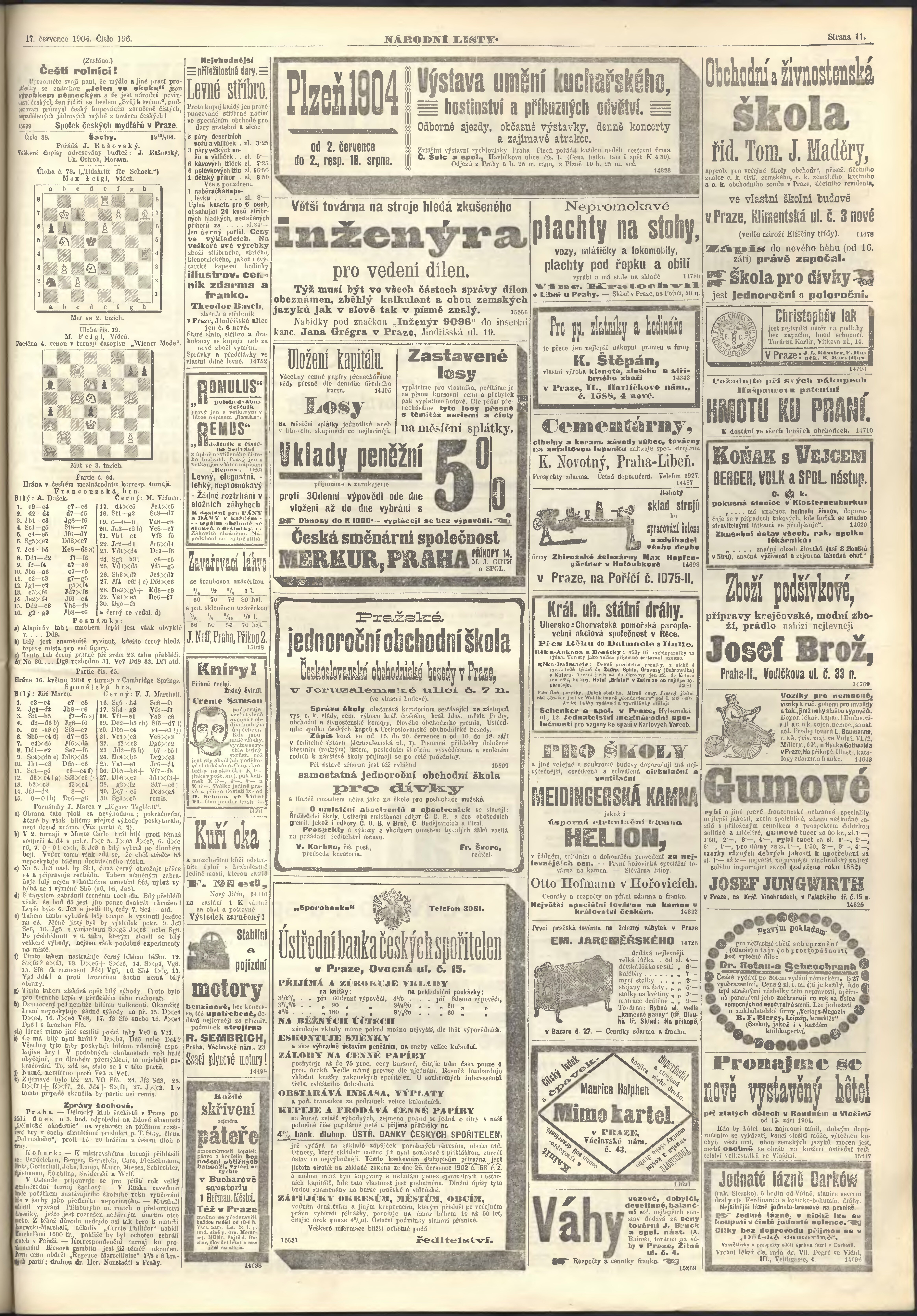 * Datum vydání výtisku: 17.7.1904 Číslo výtisku: 196 Poznámky k výtisku: ranní vydání;