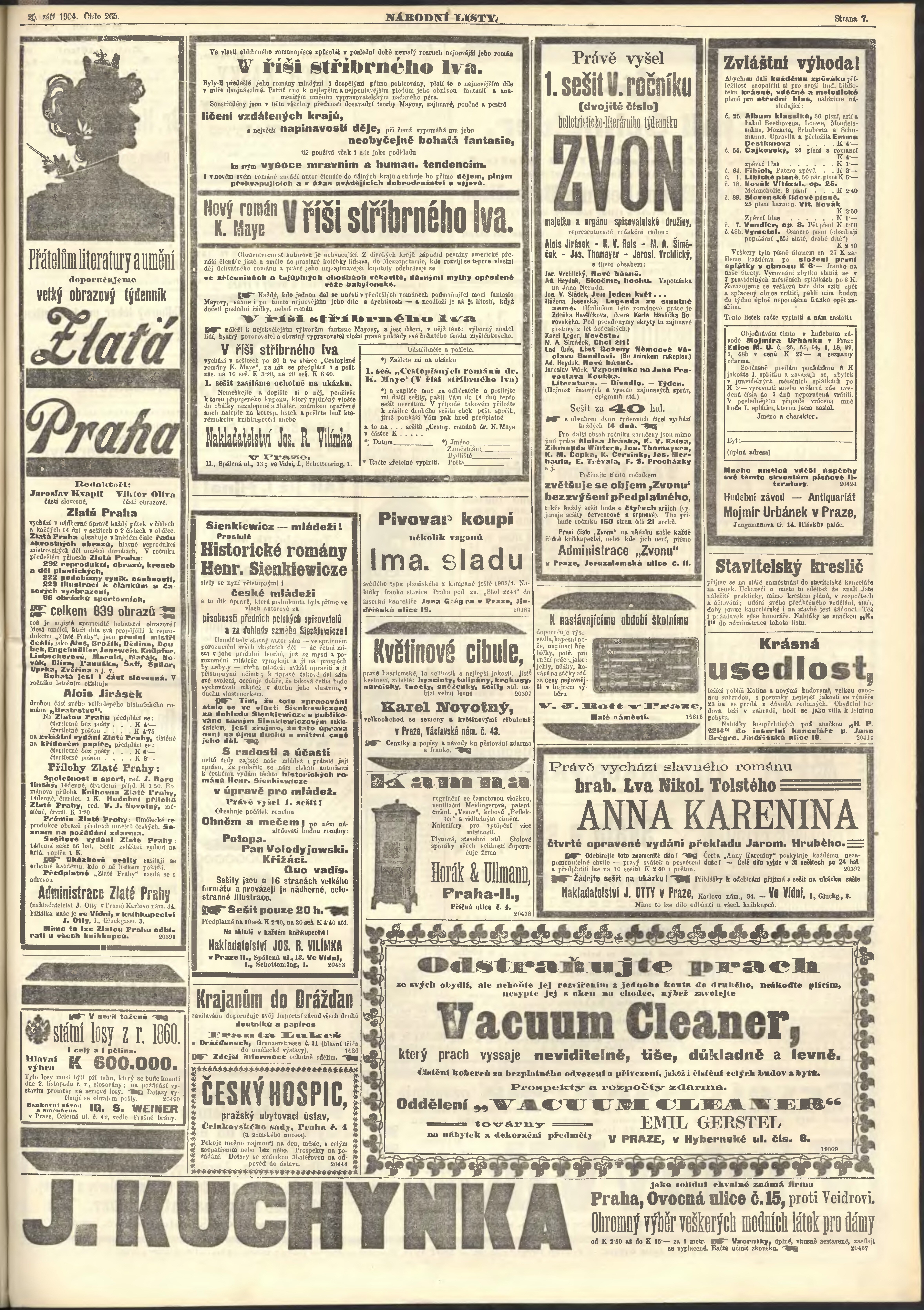 * Datum vydání výtisku: 25.9.1904 Číslo výtisku: 265 Poznámky k výtisku: ranní vydání;
