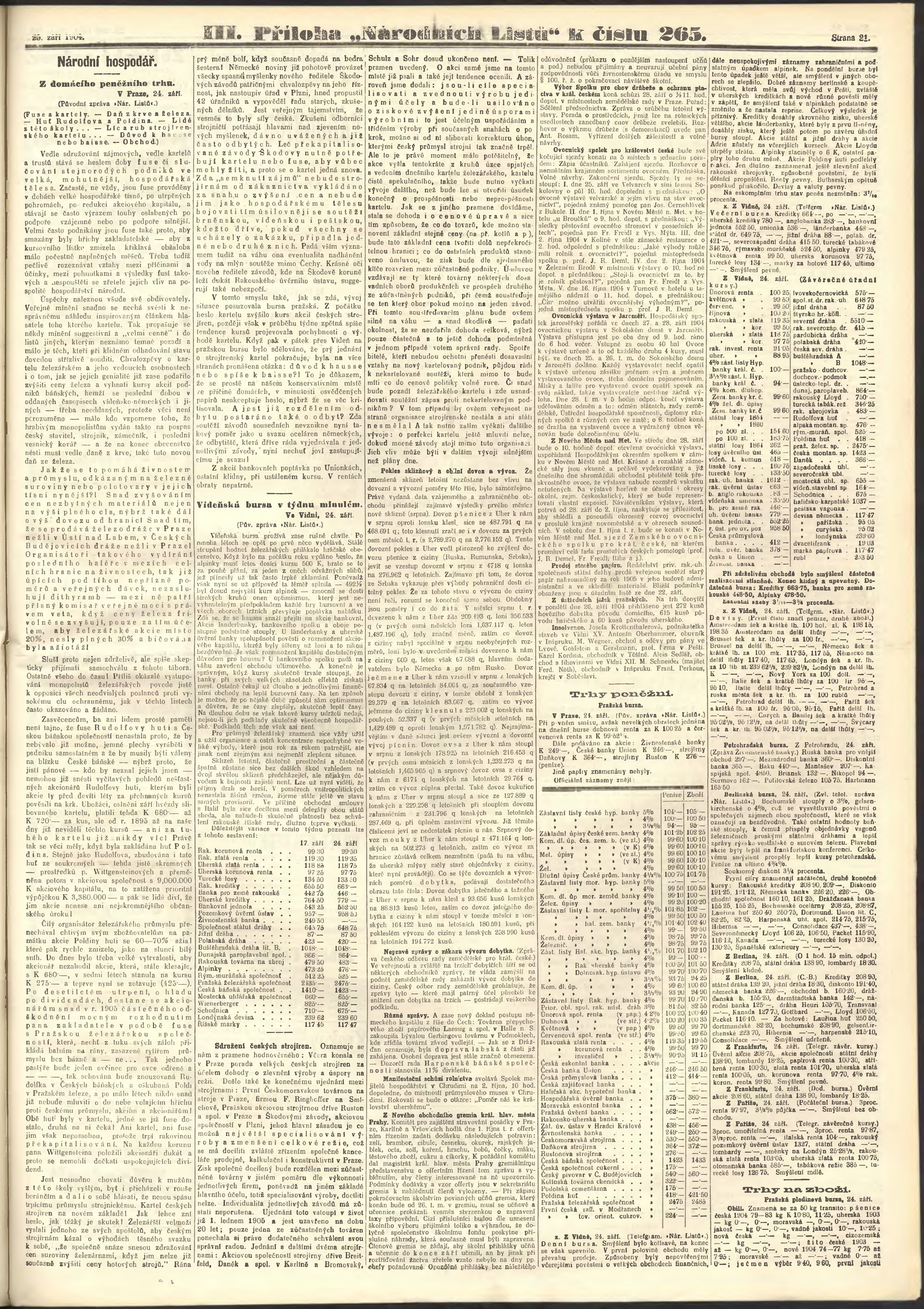* Datum vydání výtisku: 25.9.1904 Číslo výtisku: 265 Poznámky k výtisku: ranní vydání;
