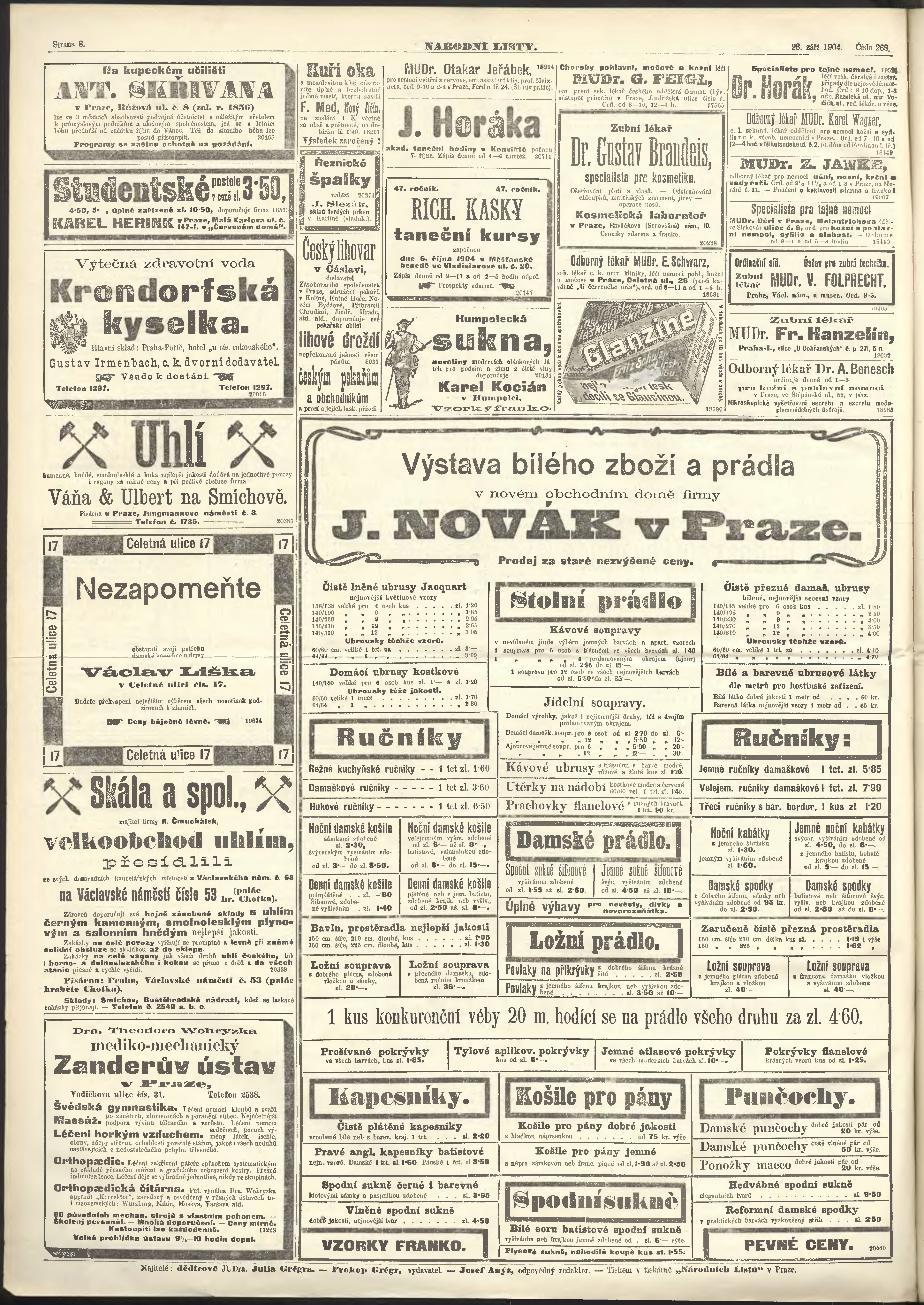 * Datum vydání výtisku: 28.9.1904 Číslo výtisku: 268 Poznámky k výtisku: ranní vydání;