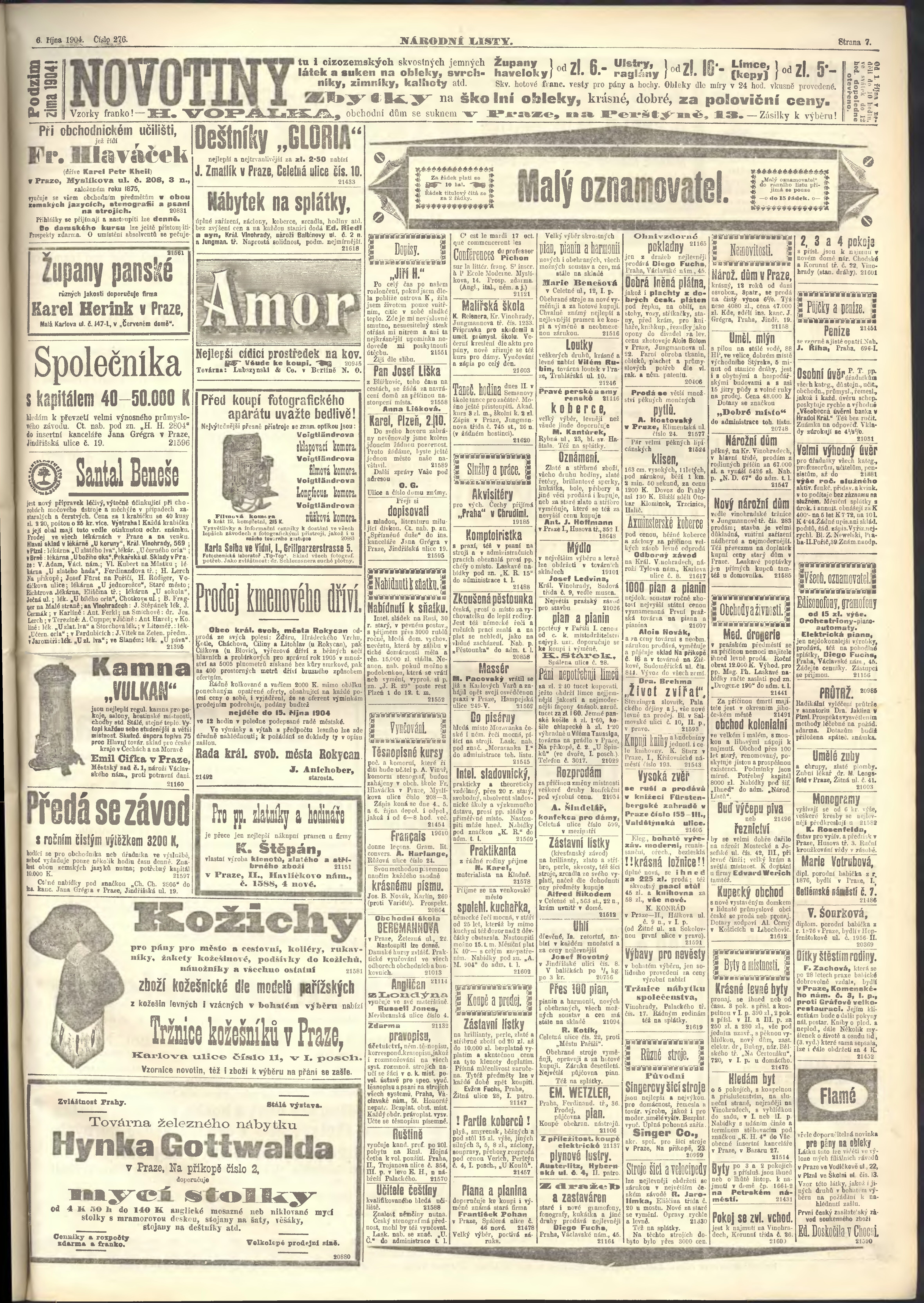 * Datum vydání výtisku: 6.10.1904 Číslo výtisku: 276 Poznámky k výtisku: ranní vydání;