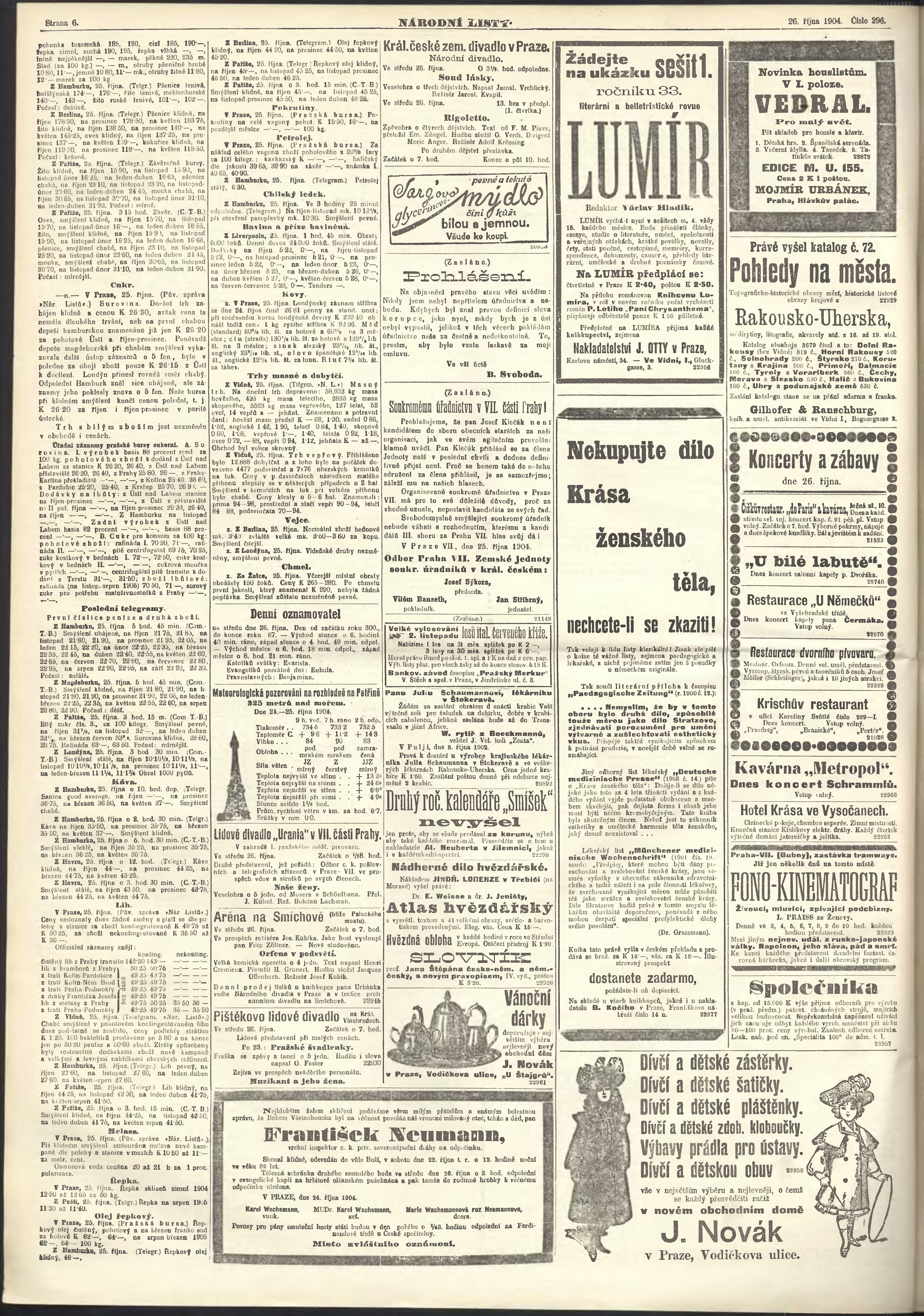 * Datum vydání výtisku: 26.10.1904 Číslo výtisku: 296 Poznámky k výtisku: ranní vydání;