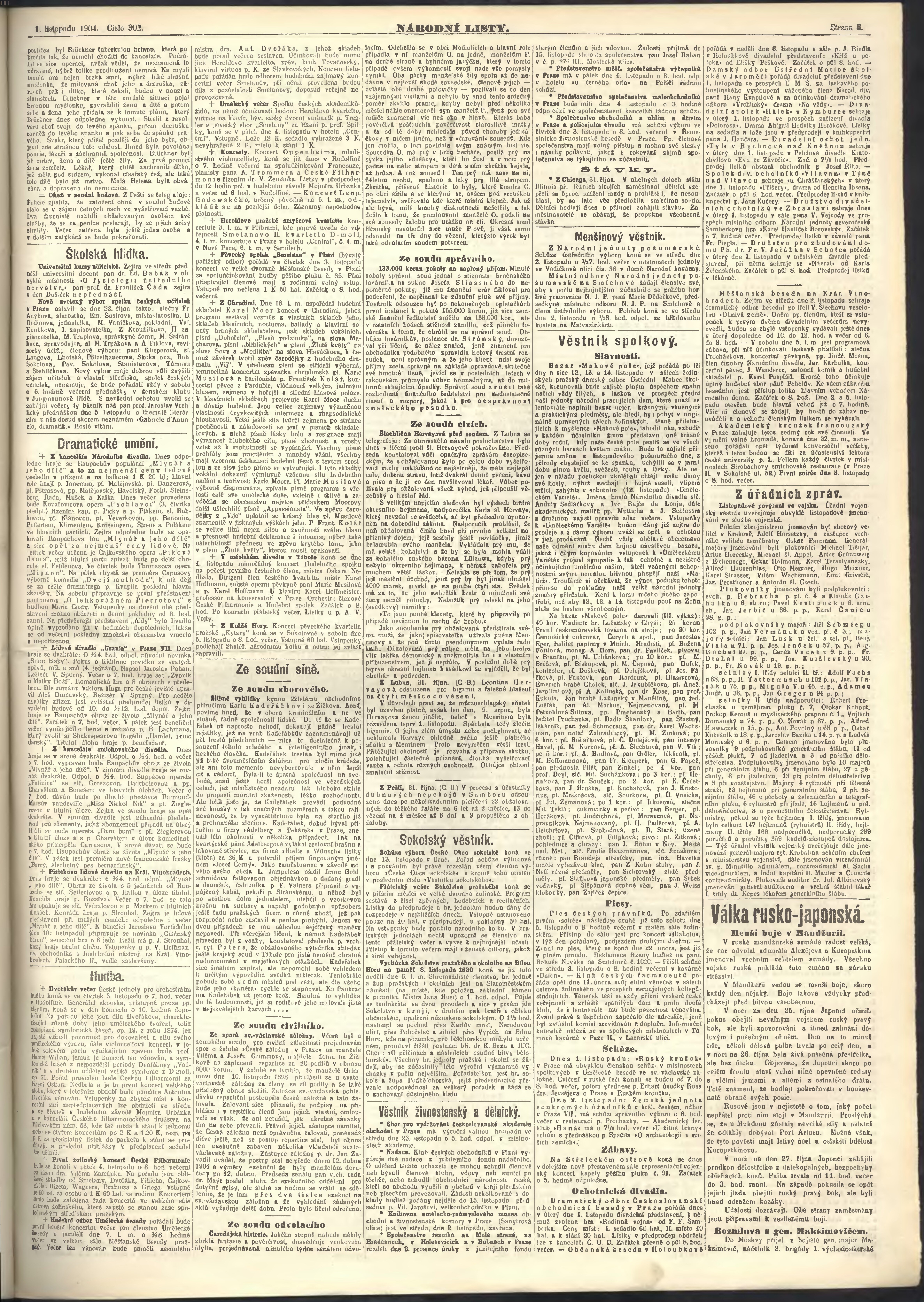 * Datum vydání výtisku: 1.11.1904 Číslo výtisku: 302 Poznámky k výtisku: ranní vydání;