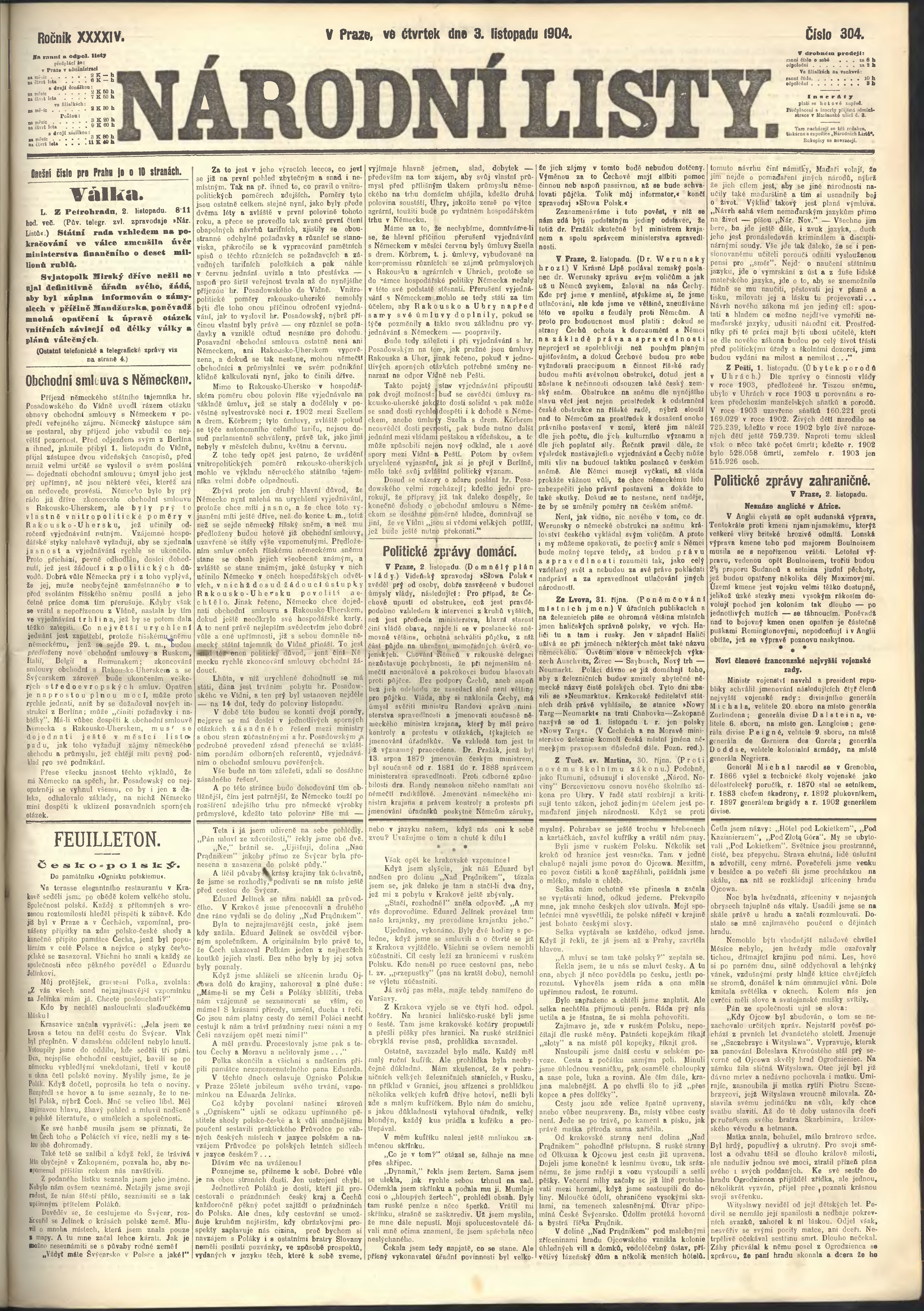 * Datum vydání výtisku: 3.11.1904 Číslo výtisku: 304 Poznámky k výtisku: ranní vydání;
