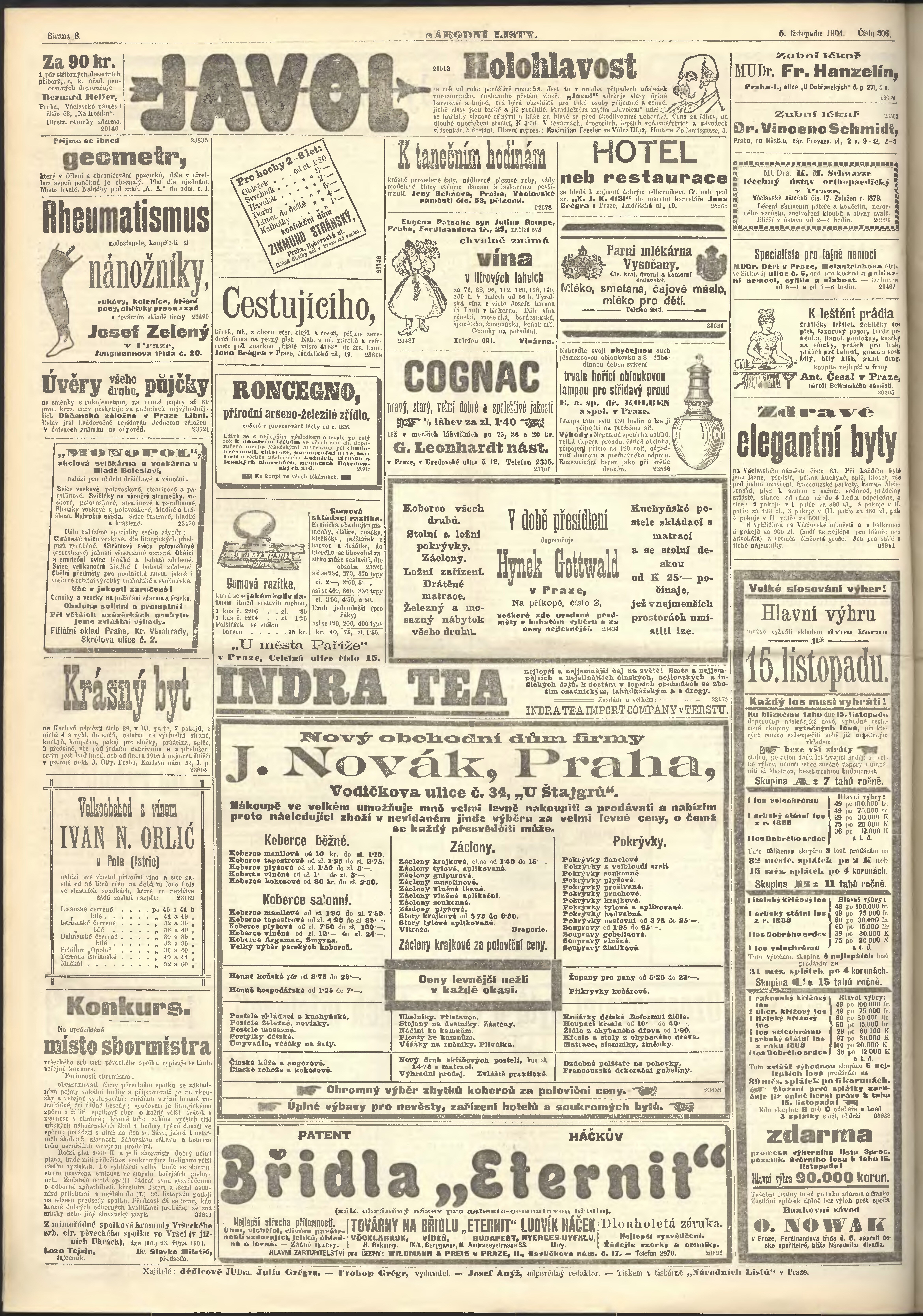 * Datum vydání výtisku: 5.11.1904 Číslo výtisku: 306 Poznámky k výtisku: ranní vydání;