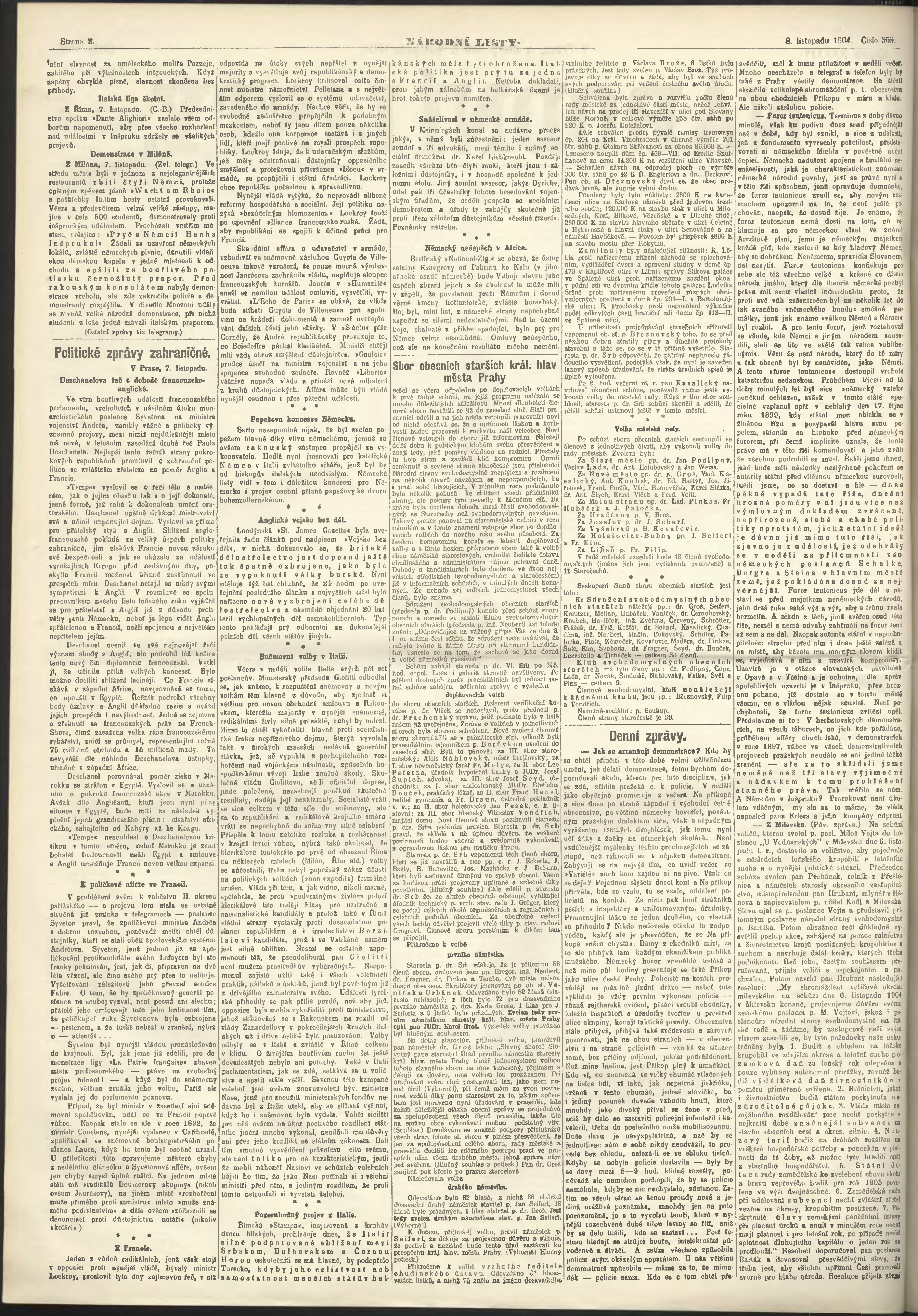 * Datum vydání výtisku: 8.11.1904 Číslo výtisku: 309 Poznámky k výtisku: ranní vydání;