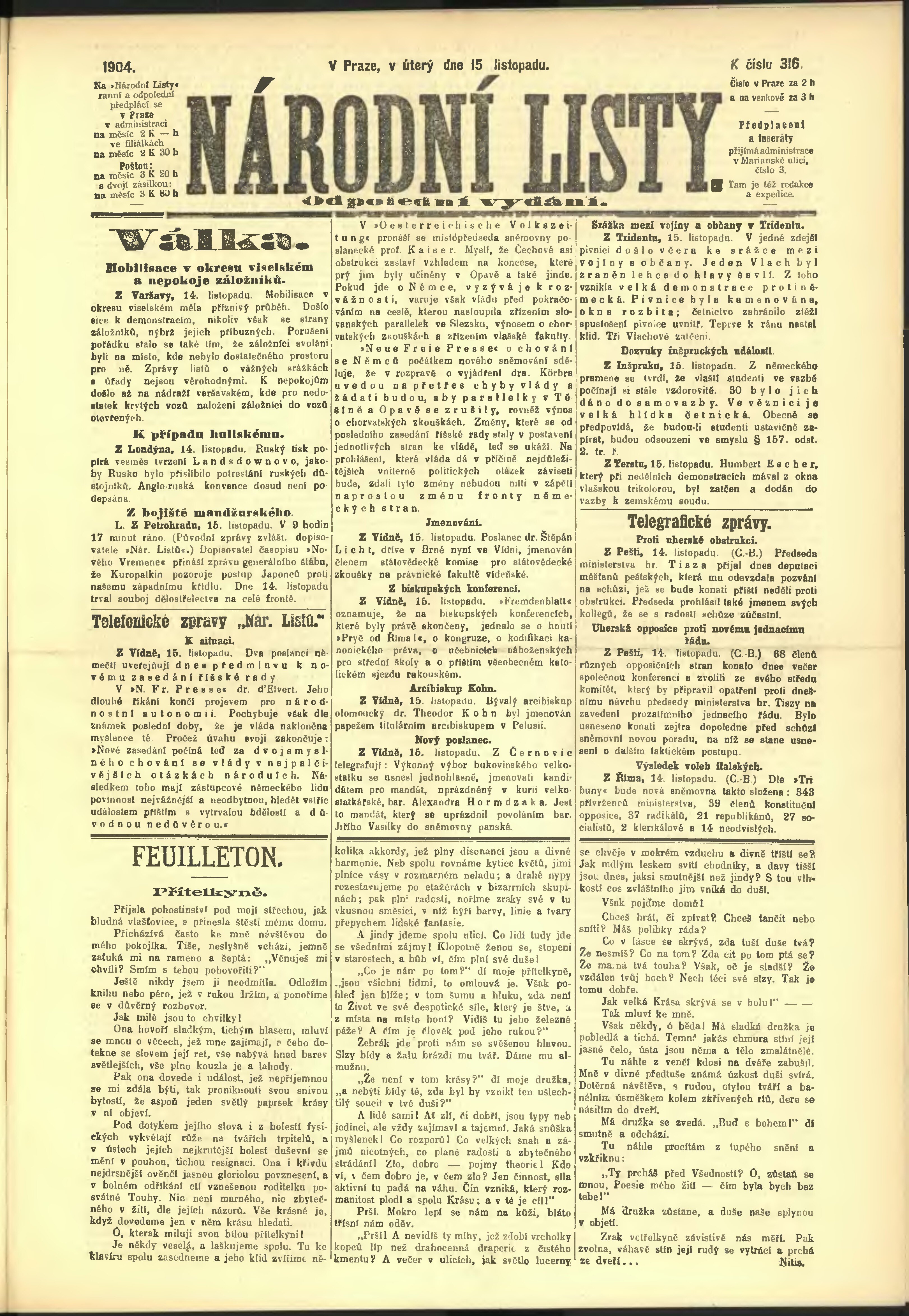* Datum vydání výtisku: 15.11.1904 Číslo výtisku: 316 Poznámky k výtisku: odpolední vydání;