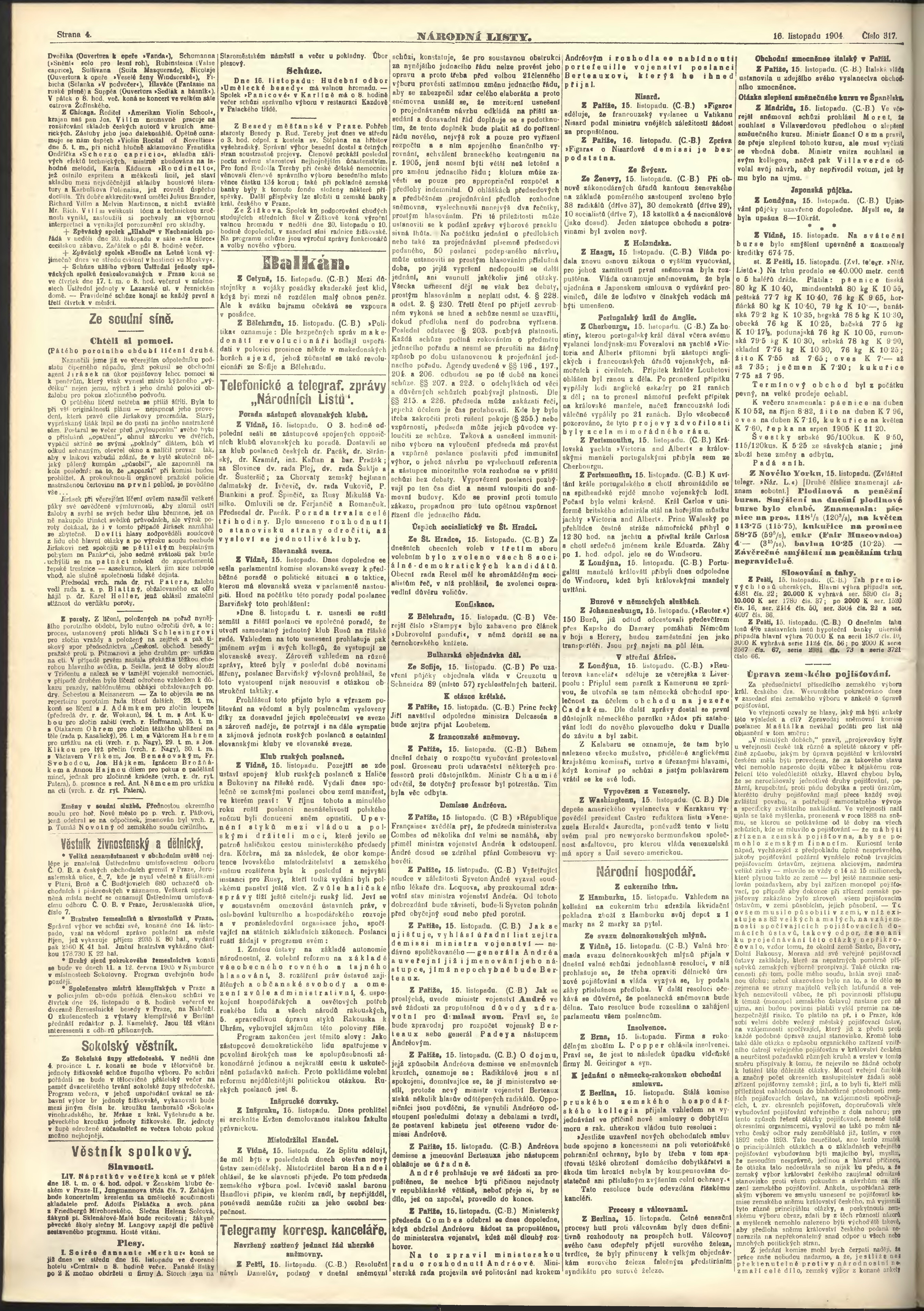 * Datum vydání výtisku: 16.11.1904 Číslo výtisku: 317 Poznámky k výtisku: ranní vydání;