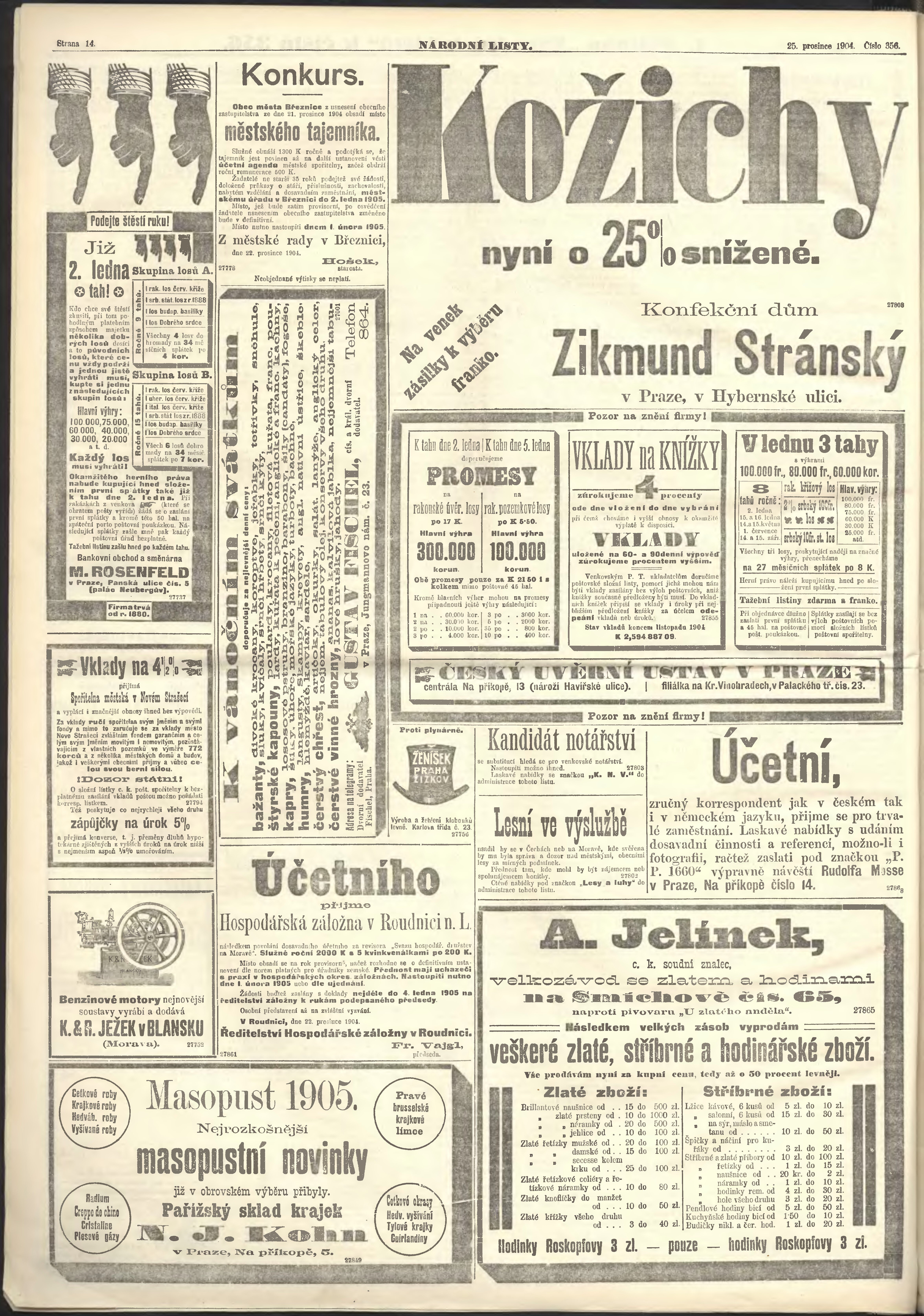 * Datum vydání výtisku: 25.12.1904 Číslo výtisku: 356 Poznámky k výtisku: ranní vydání;