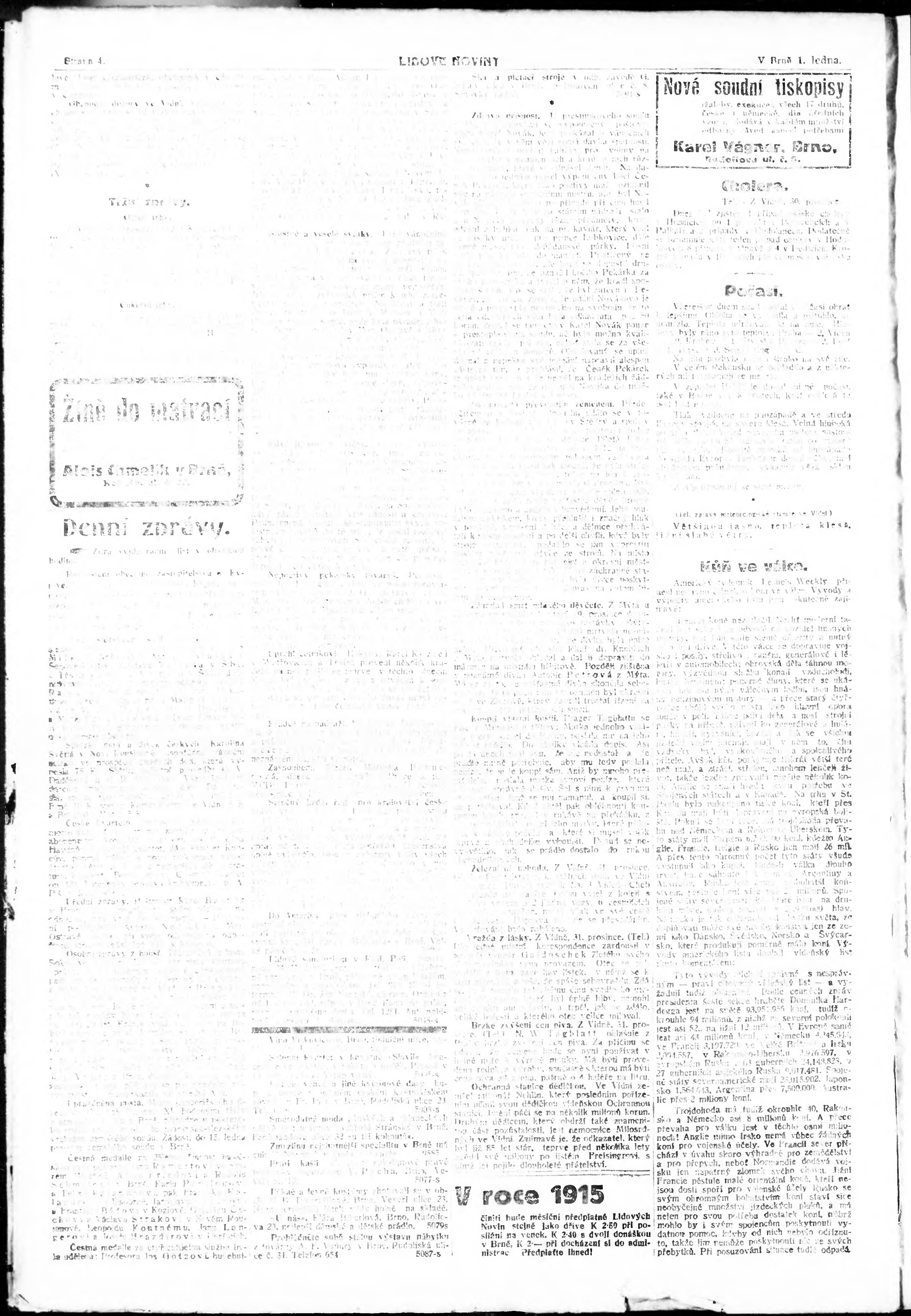 * Datum vydání výtisku: 1.1.1915 Číslo výtisku: 1 Poznámky k výtisku: ranní vydání; s. 6, 9 není k dispozici;