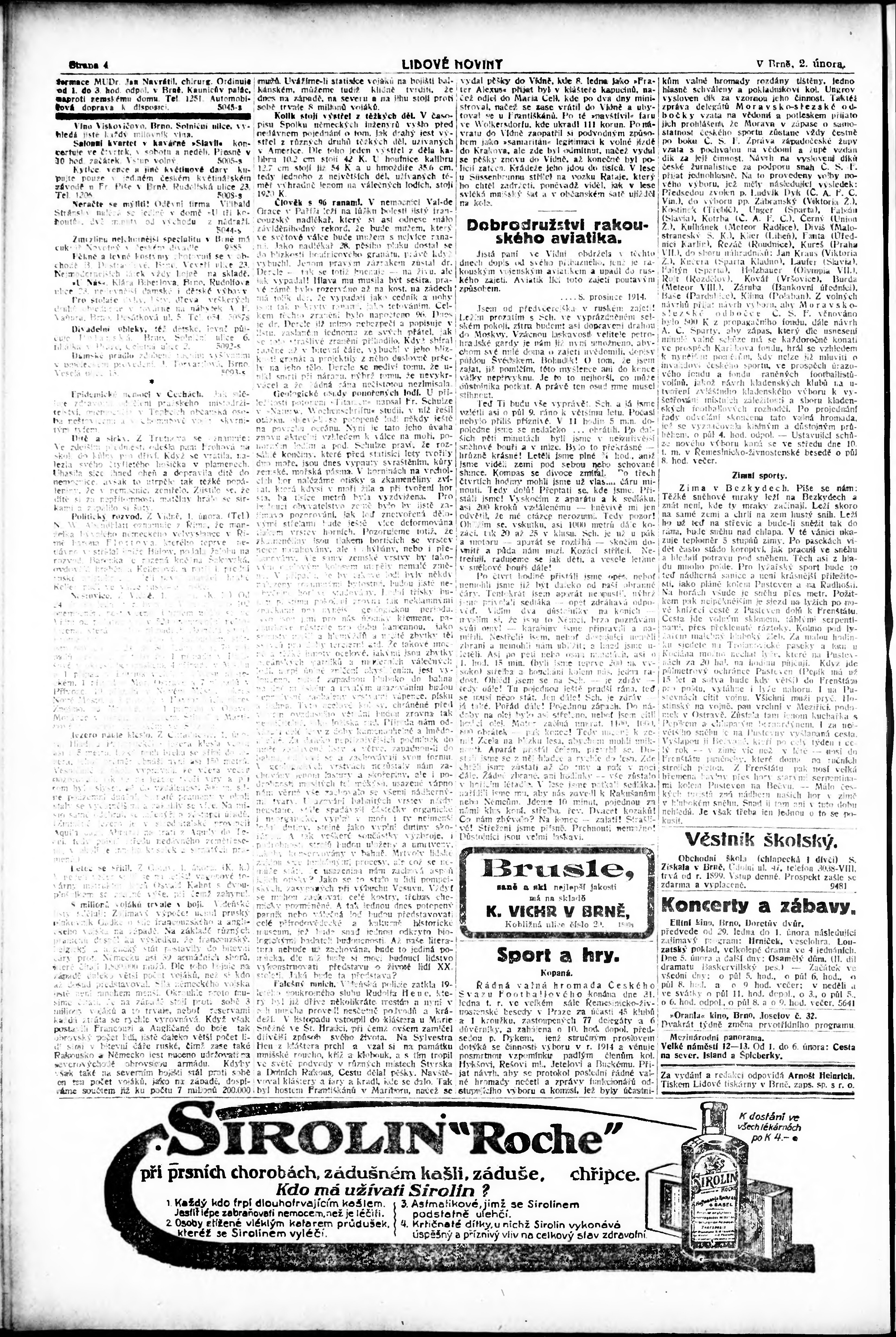 * Datum vydání výtisku: 2.2.1915 Číslo výtisku: 33 Poznámky k výtisku: ranní vydání;