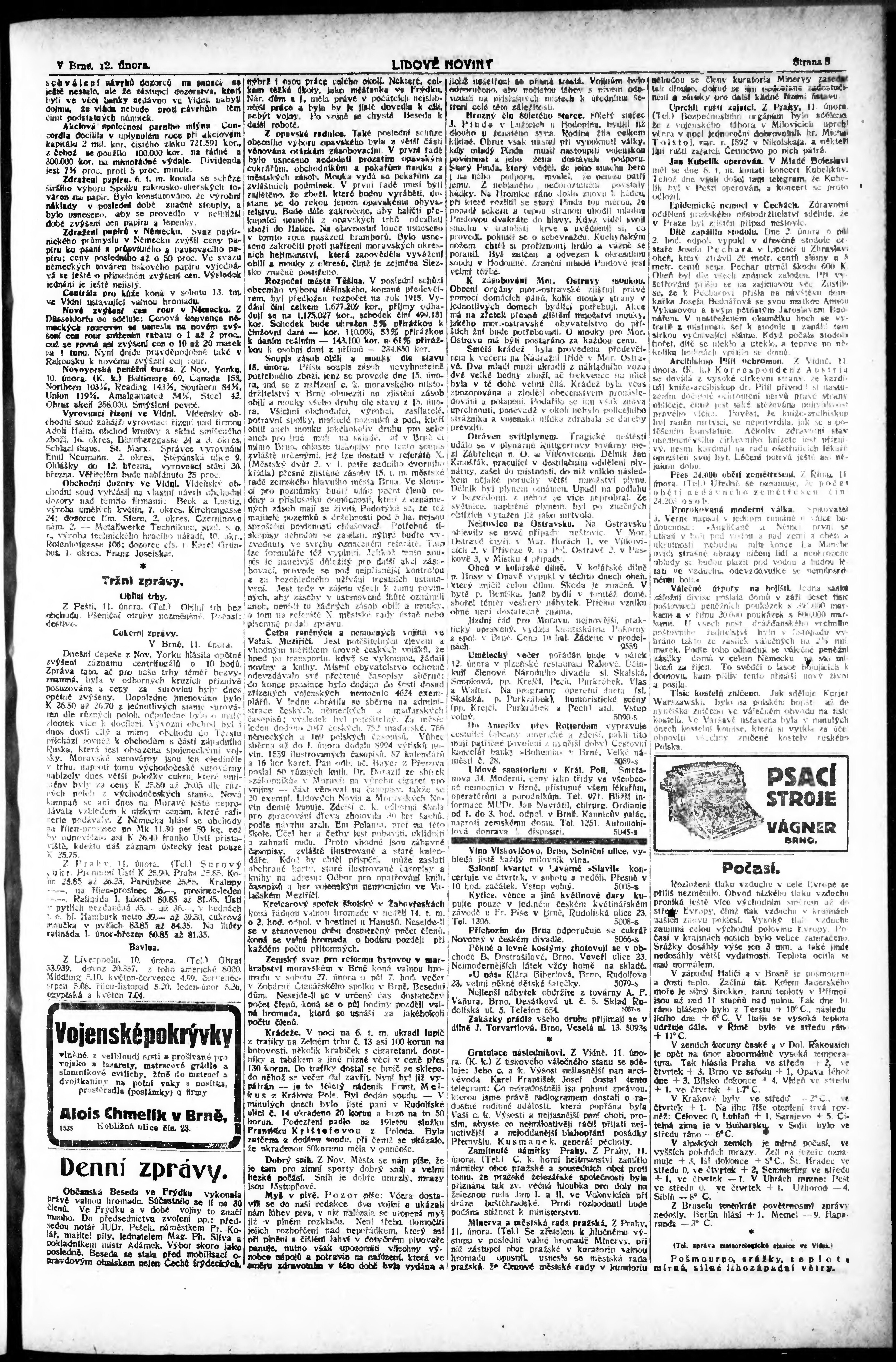 * Datum vydání výtisku: 12.2.1915 Číslo výtisku: 43 Poznámky k výtisku: ranní vydání;