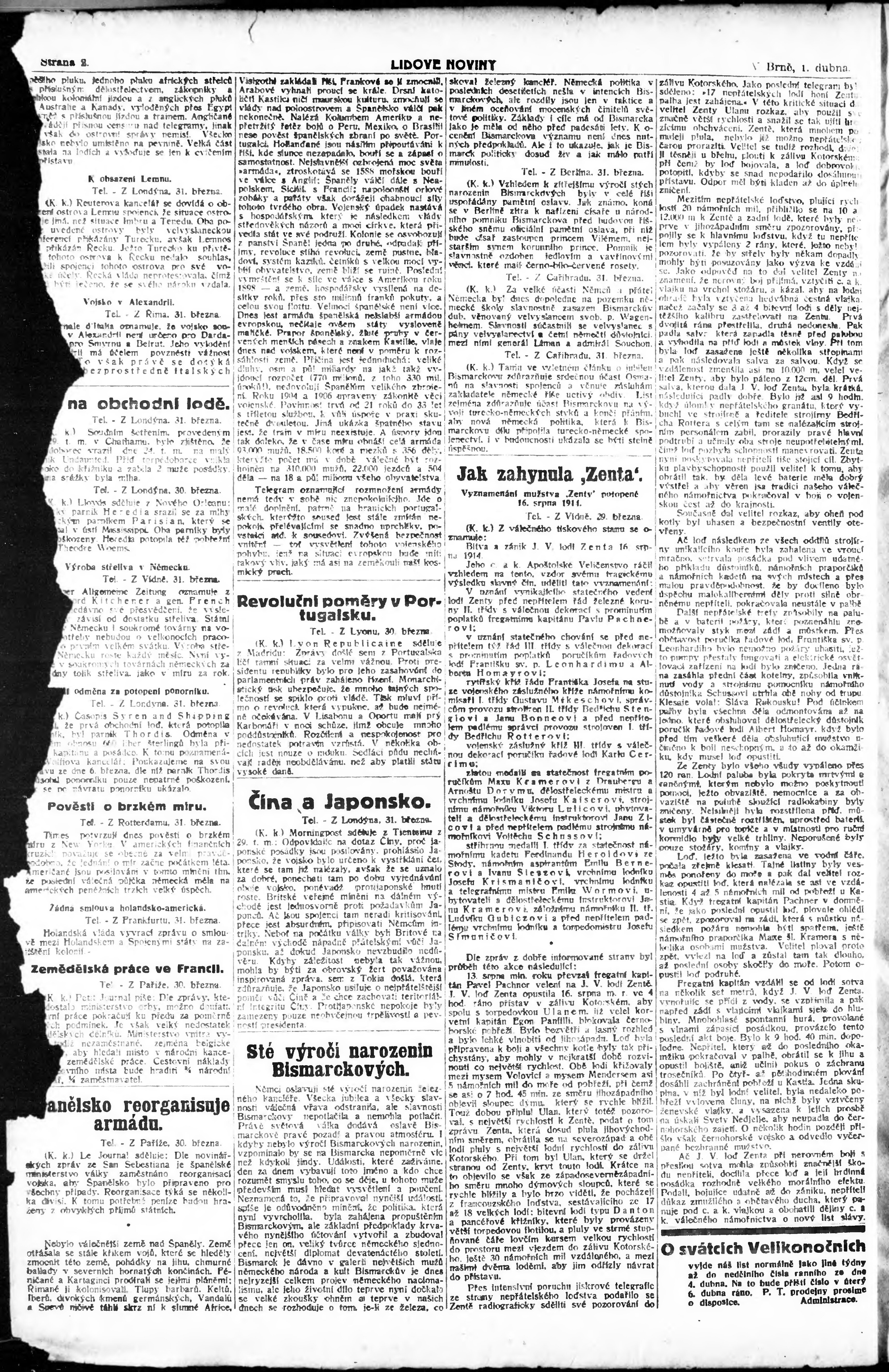 * Datum vydání výtisku: 1.4.1915 Číslo výtisku: 84 Poznámky k výtisku: ranní vydání;
