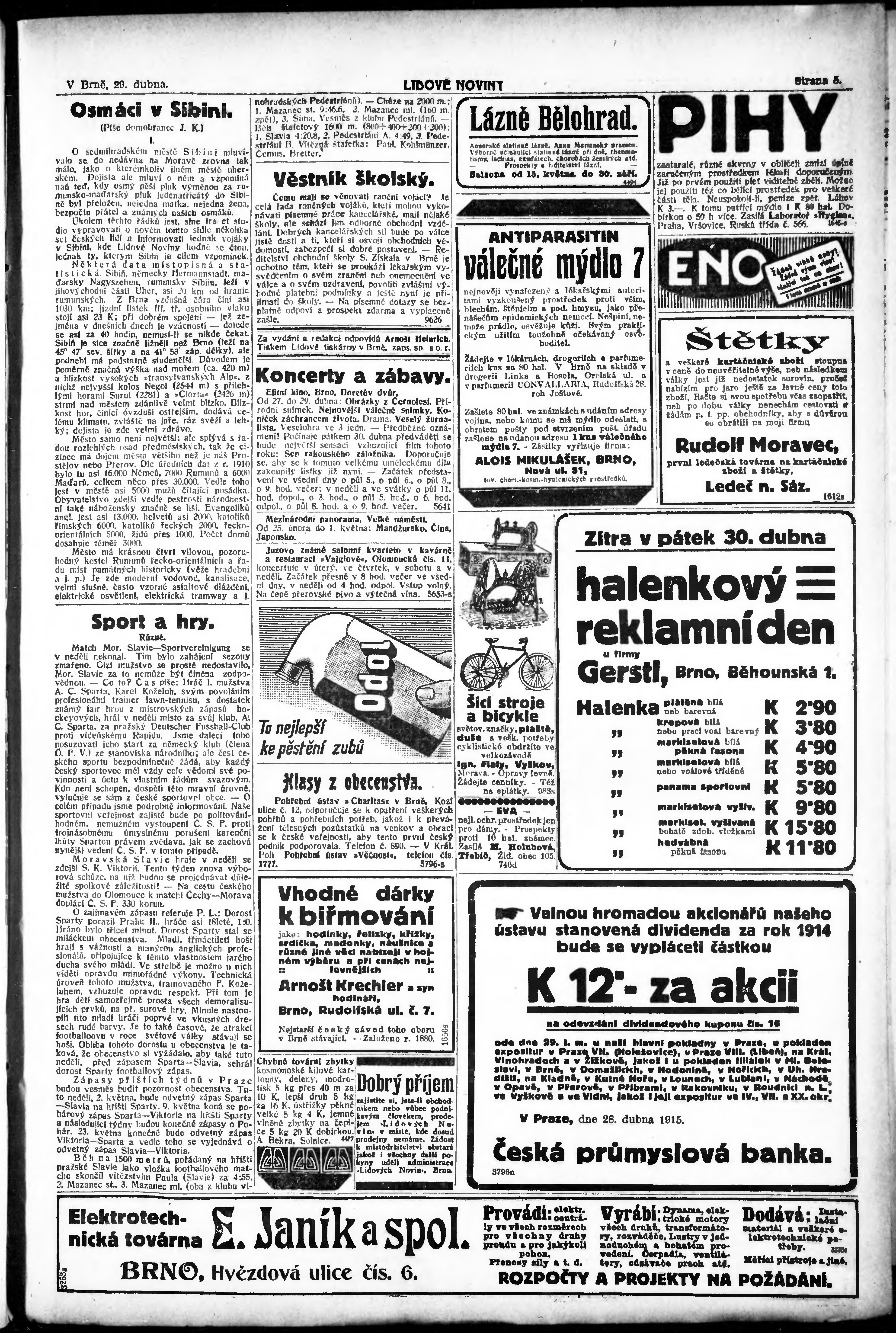 * Datum vydání výtisku: 29.4.1915 Číslo výtisku: 111 Poznámky k výtisku: ranní vydání;