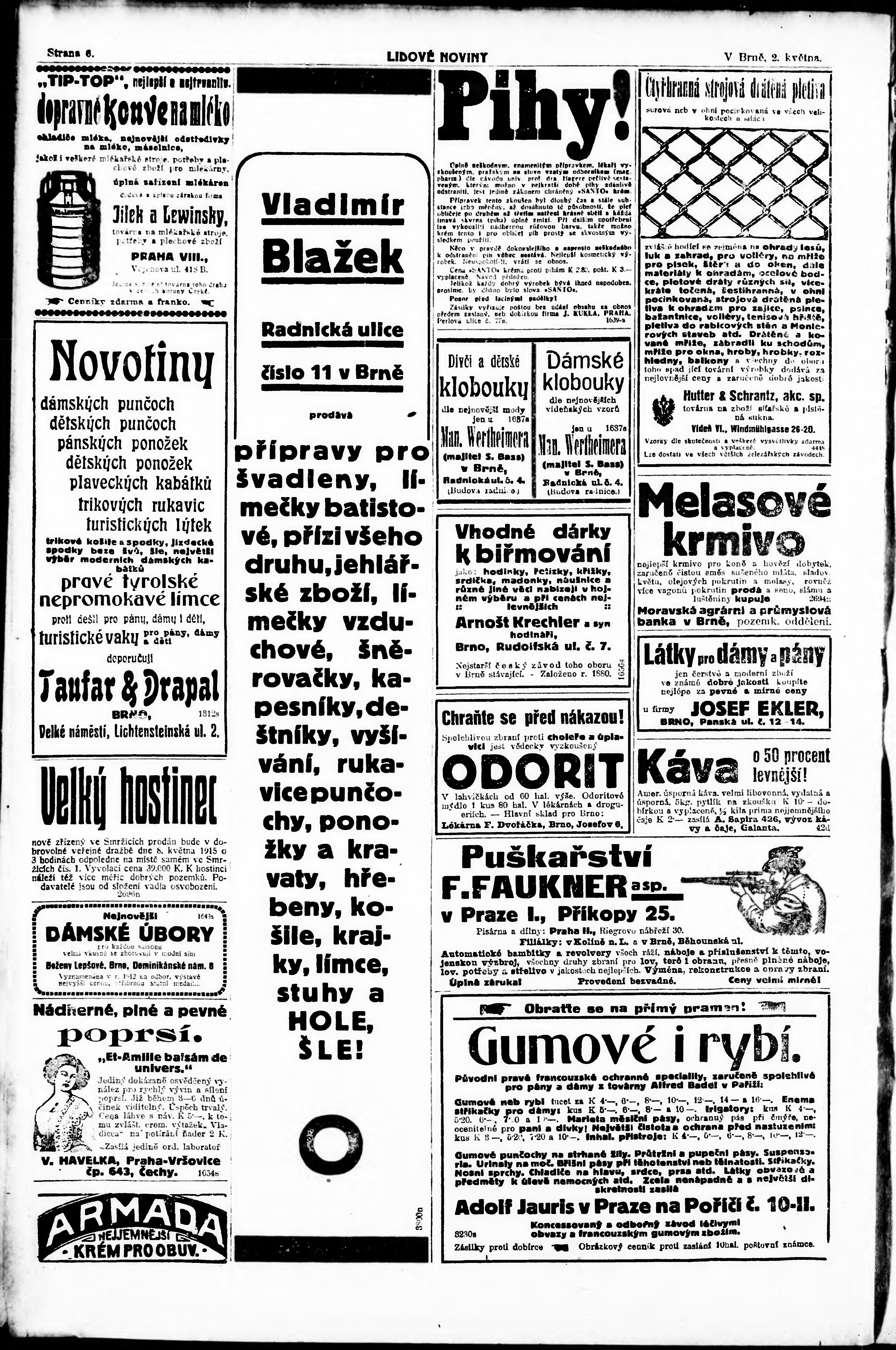 * Datum vydání výtisku: 2.5.1915 Číslo výtisku: 114 Poznámky k výtisku: ranní vydání;