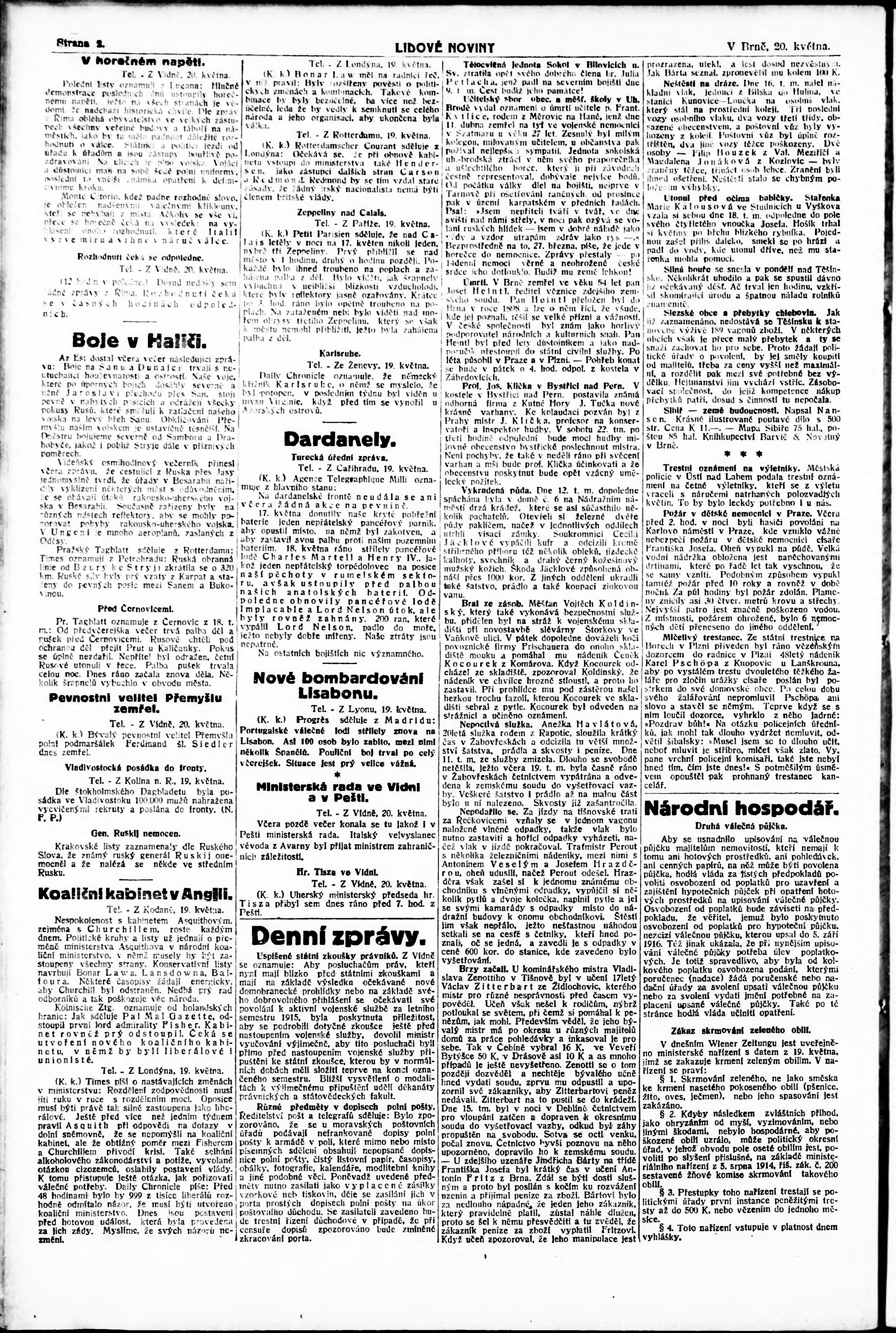 * Datum vydání výtisku: 20.5.1915 Číslo výtisku: 132 Poznámky k výtisku: odpolední vydání;