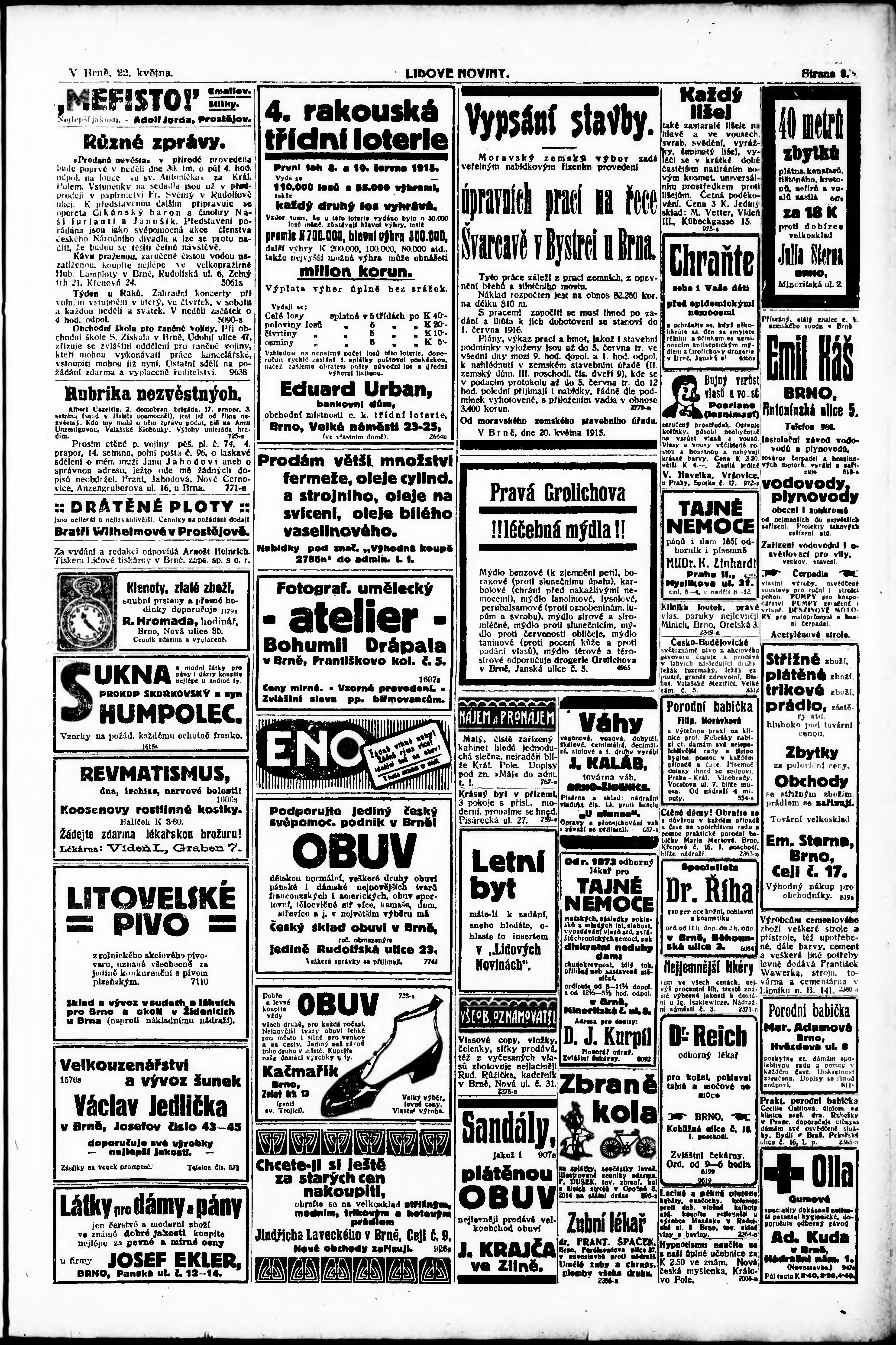 * Datum vydání výtisku: 22.5.1915 Číslo výtisku: 134 Poznámky k výtisku: odpolední vydání;