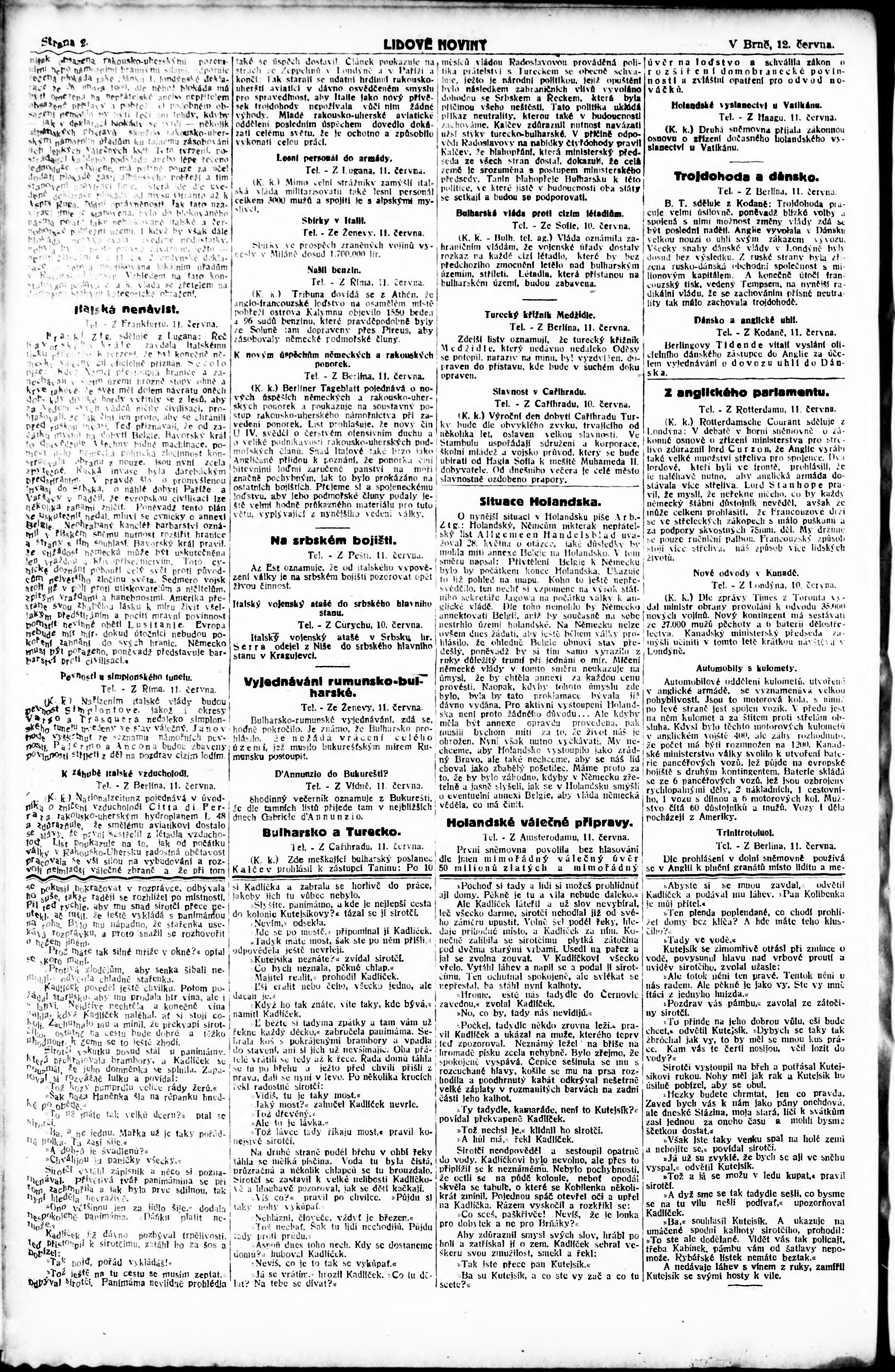 * Datum vydání výtisku: 12.6.1915 Číslo výtisku: 155 Poznámky k výtisku: ranní vydání;