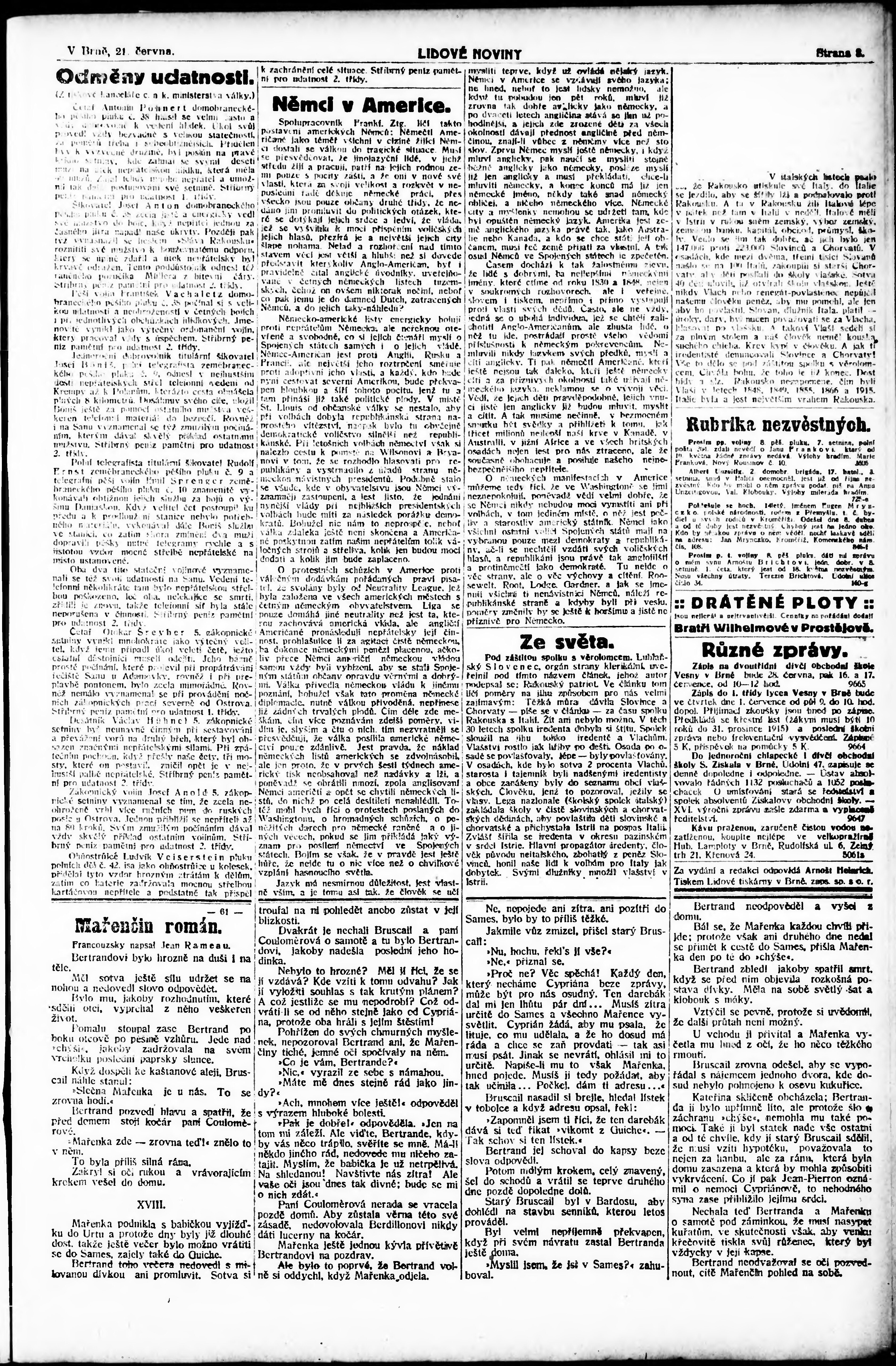 * Datum vydání výtisku: 22.6.1915 Číslo výtisku: 165 Poznámky k výtisku: odpolední vydání;