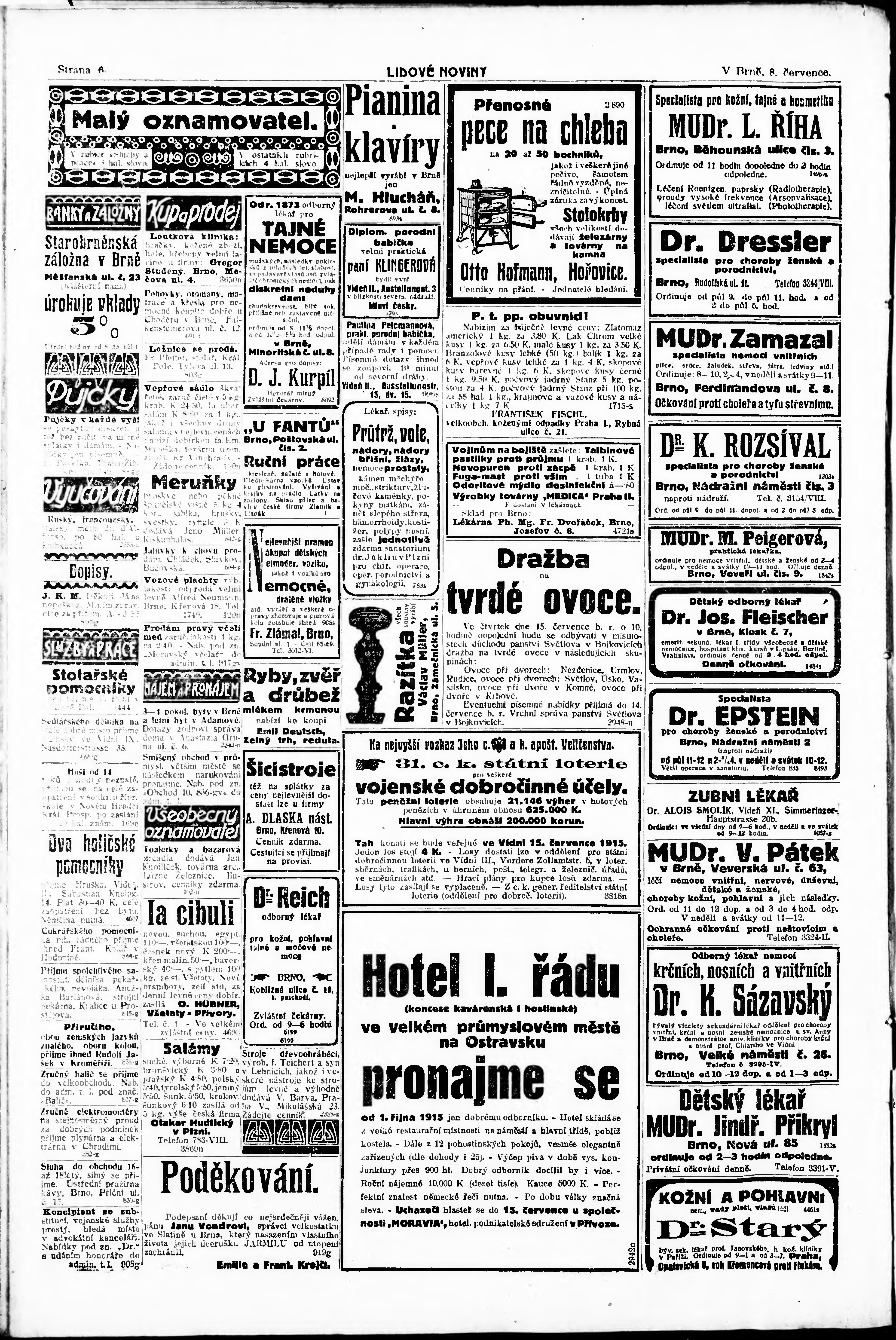* Datum vydání výtisku: 8.7.1915 Číslo výtisku: 181 Poznámky k výtisku: ranní vydání;