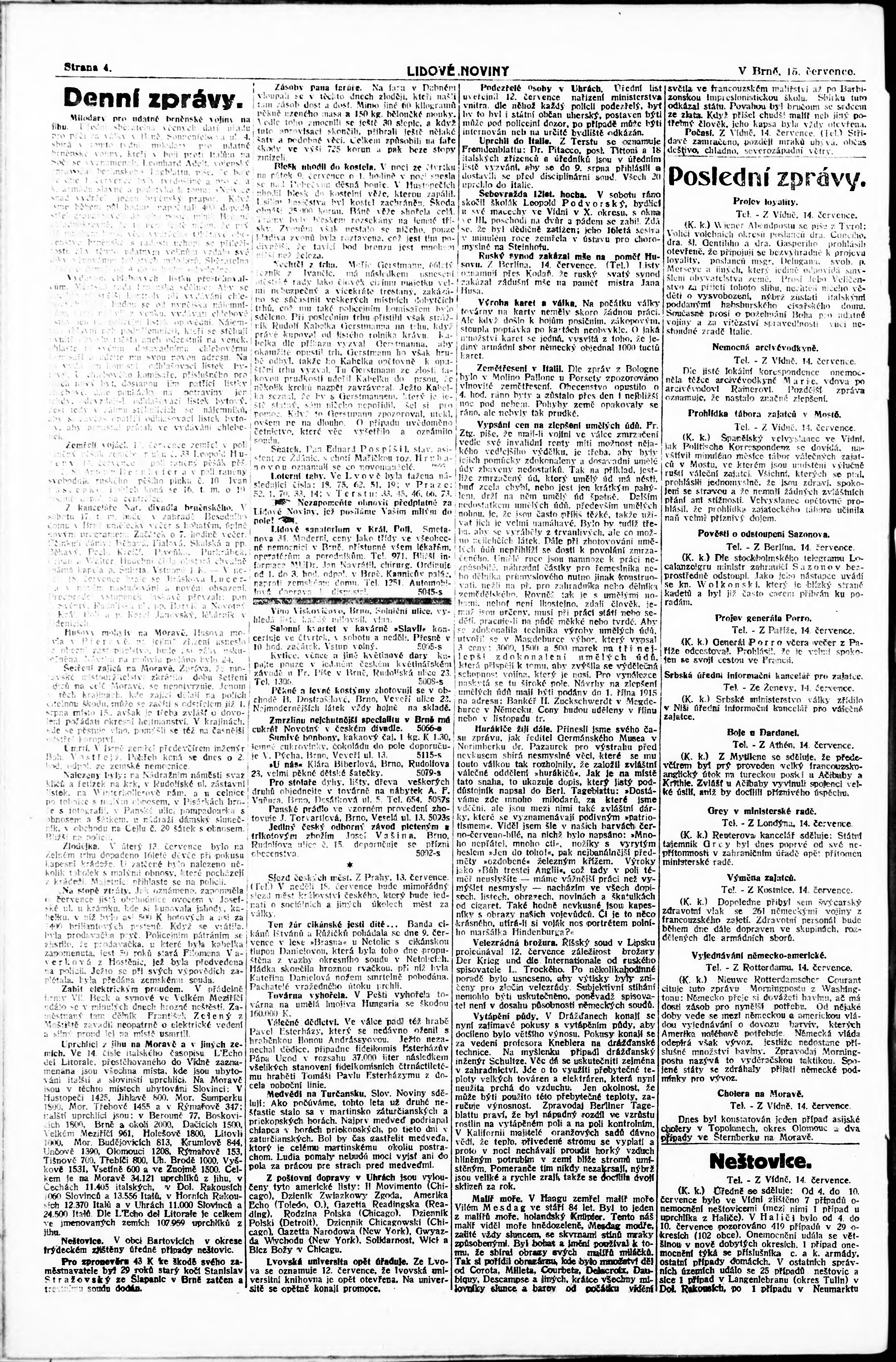 * Datum vydání výtisku: 15.7.1915 Číslo výtisku: 188 Poznámky k výtisku: ranní vydání;