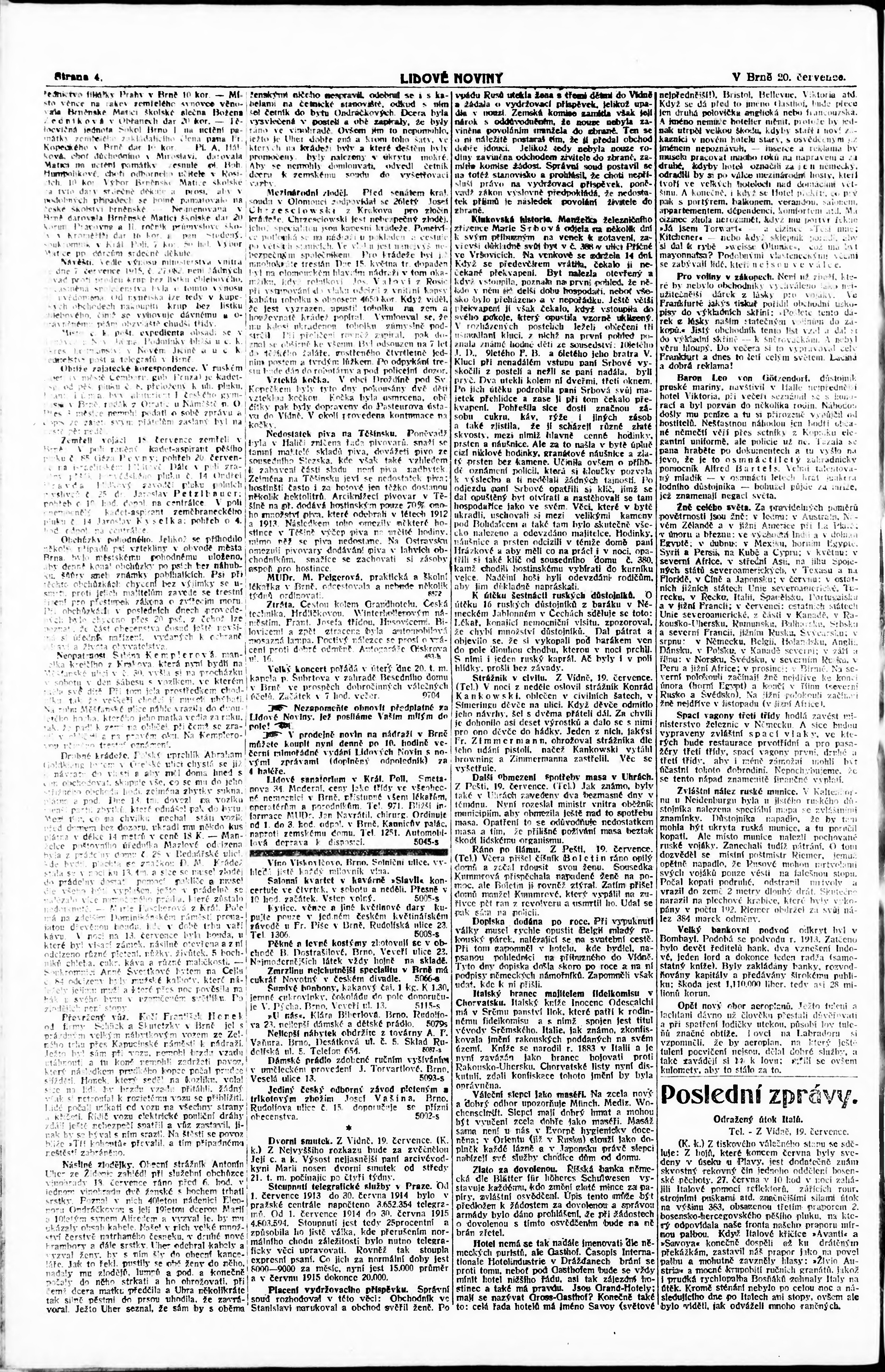 * Datum vydání výtisku: 20.7.1915 Číslo výtisku: 193 Poznámky k výtisku: ranní vydání;