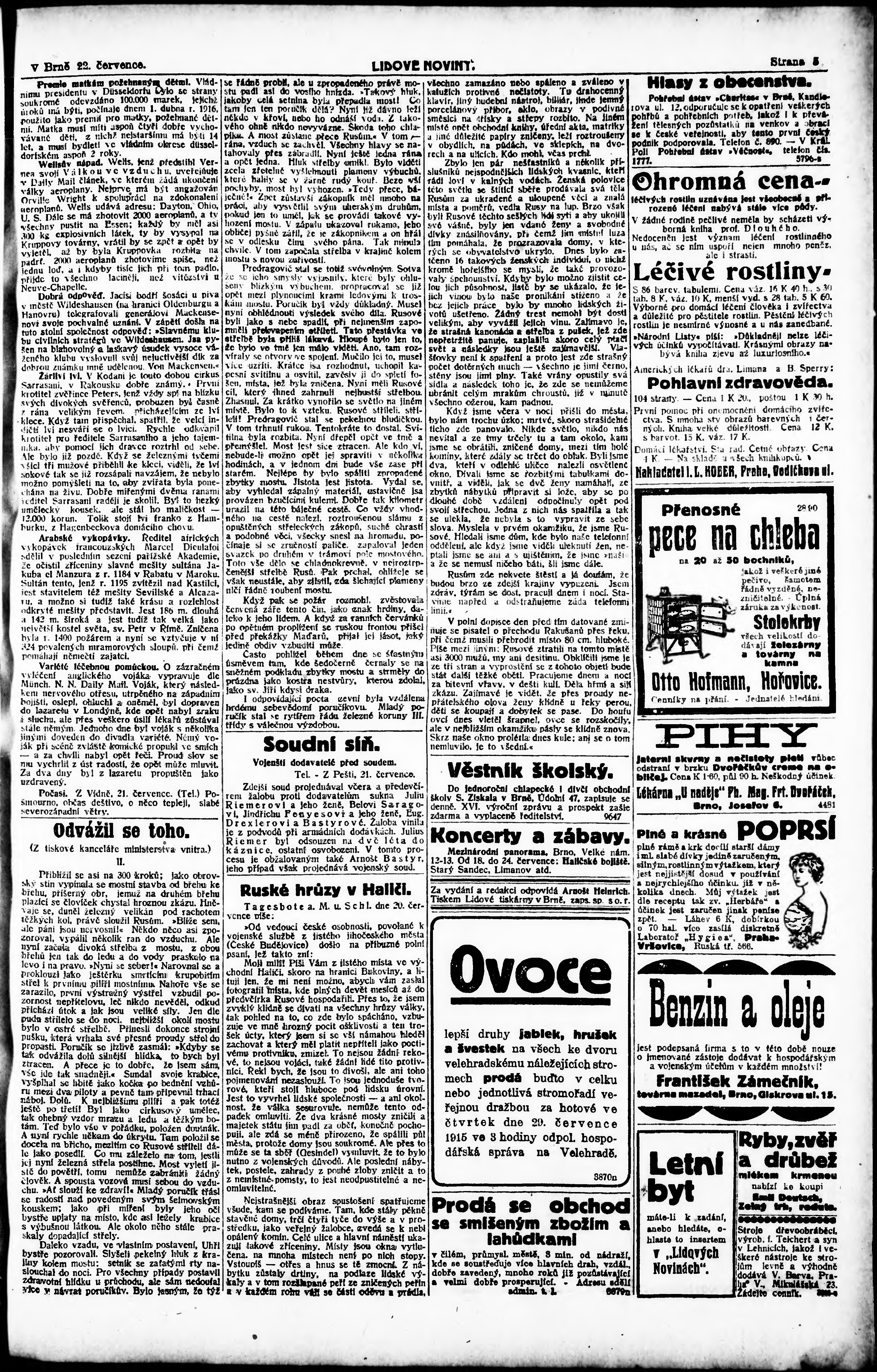 * Datum vydání výtisku: 22.7.1915 Číslo výtisku: 195 Poznámky k výtisku: ranní vydání;